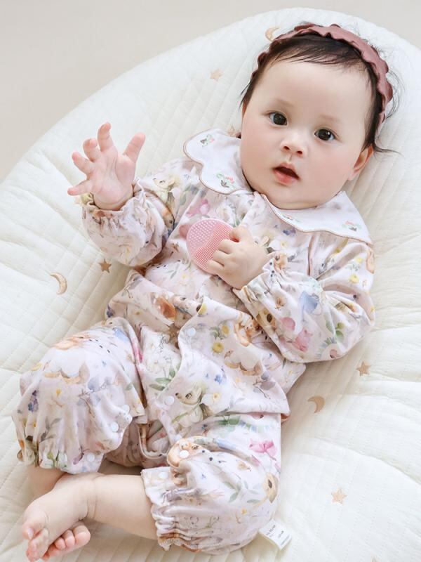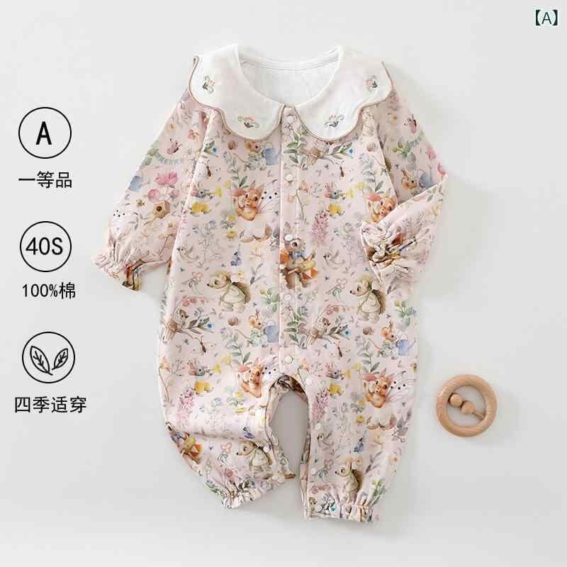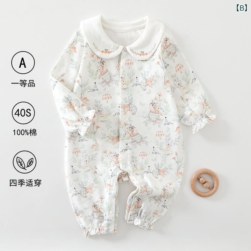 ベビー ロンパース 女の子 新生児 綿100% 長袖 オールシーズン 肌に優しい カバーオール 前開き スナップボタン A類基準クリア