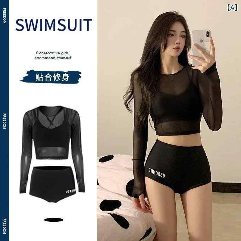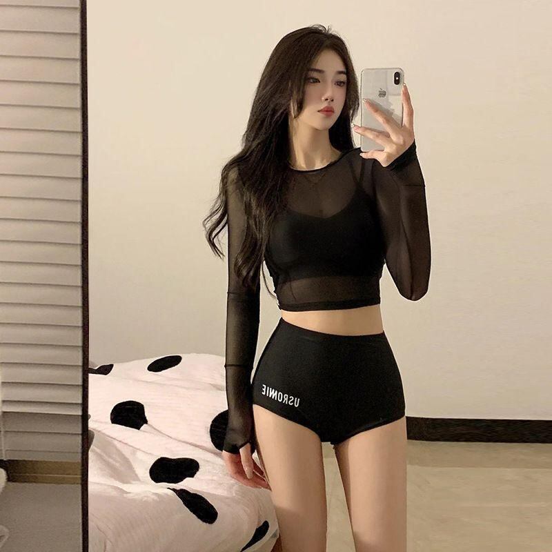 水着 レディース セパレート ビキニ 3点セット 長袖 カバーアップ UVカット スイミング プール ビーチ マリンスポーツ ワイヤー入り パッド付き 速乾 伸縮性 ブラック