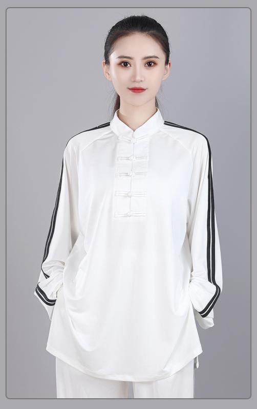 太極拳ウェア レディース 高級感 接触冷感 モダール素材 ストレッチ 太極拳 八段錦 演武 練習着 トレーニング 武術服 吸湿速乾 ゆったり 軽量 ホワイト