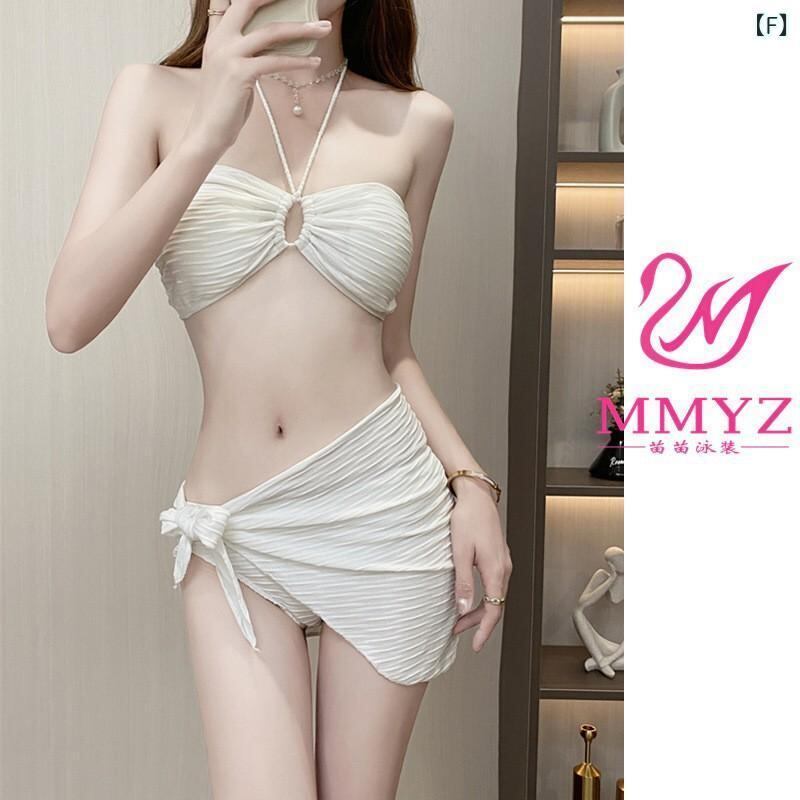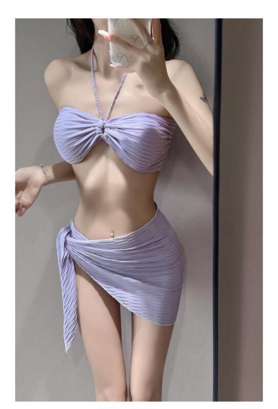 水着 レディース セクシー ビキニ 3点セット シアースカート ホルターネック チューブトップ 無地 ポリエステル 伸縮性 リゾート ビーチ プール スイムウェア