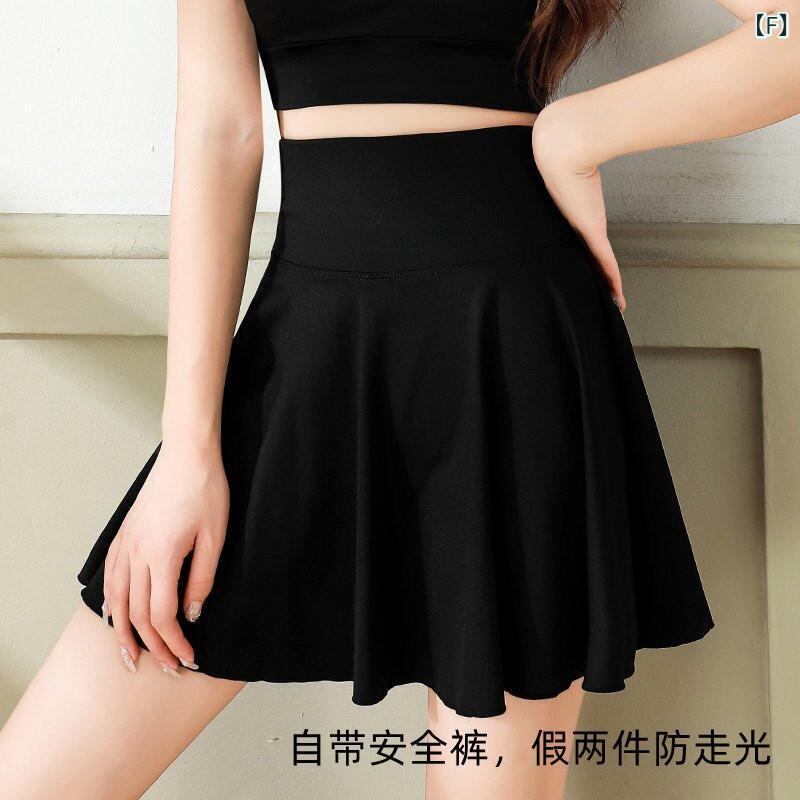 スカート レディース 黒色 プリーツ Aライン ハイウエスト ゴムウエスト インナーパンツ付き フレア ボリューム ミニスカート ダンス 普段使い 秋 冬 ポリエステル