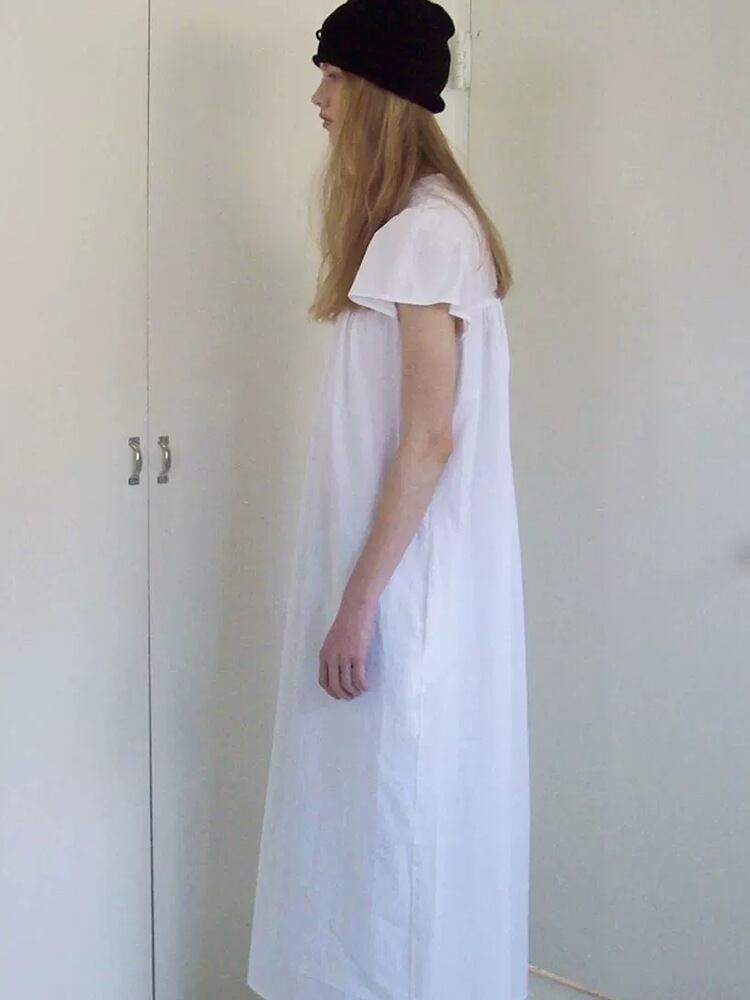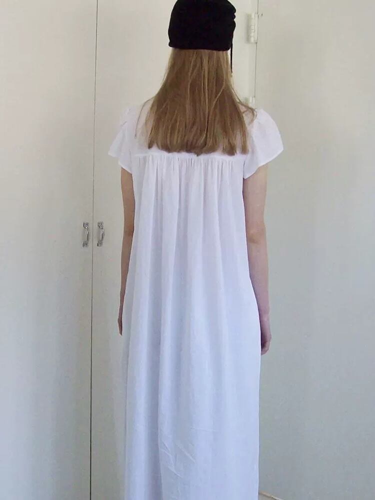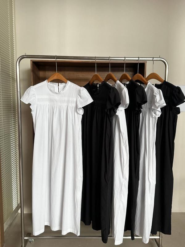 ワンピース レディース 半袖 無地 レース スタンドカラー Aライン ロング丈 ウエストマーク 細見え 綿 コットン カジュアル 韓国ファッション 普段使い 上品 エレガント デイリー ホワイト ブラック