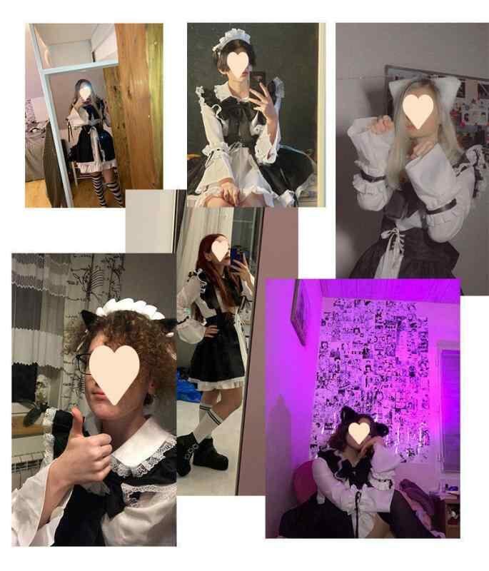 メイド服 レディース メンズ 猫耳 ロリータ かわいい 日常使い コスプレ衣装 ワンピースドレス フルセット 再生繊維 ポリエステル製 イベント ハロウィン アニメ系 Aライン