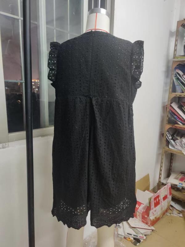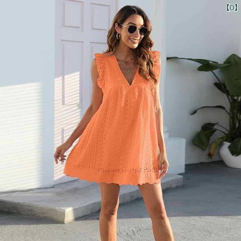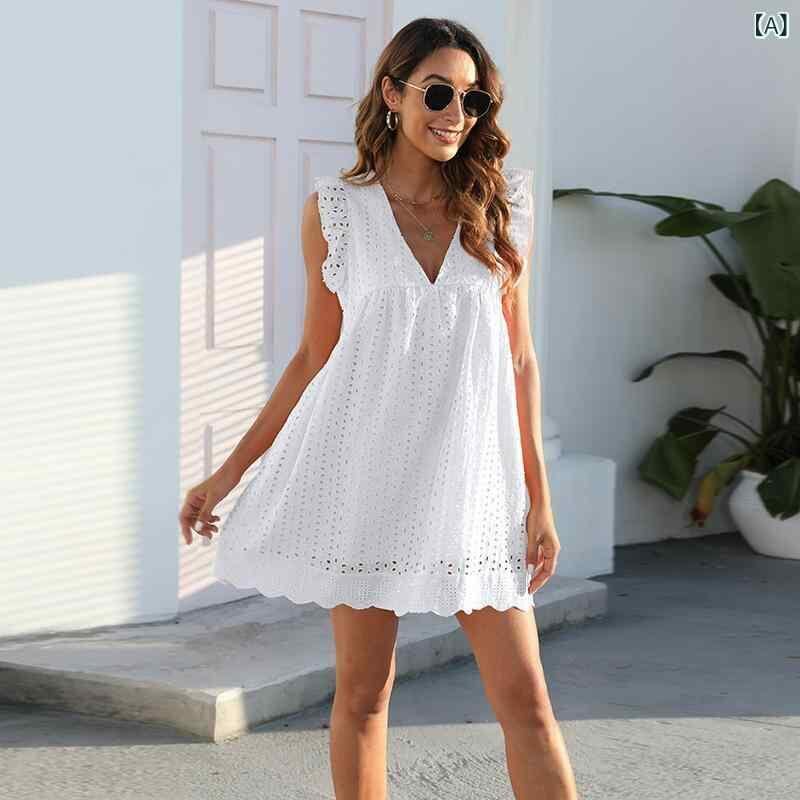 ワンピース レディース レース ジャカード 透かし編み Vネック ノースリーブ ミディ丈 ポケット付き インナーショートパンツ付き ポリエステル素材 通勤 エレガント