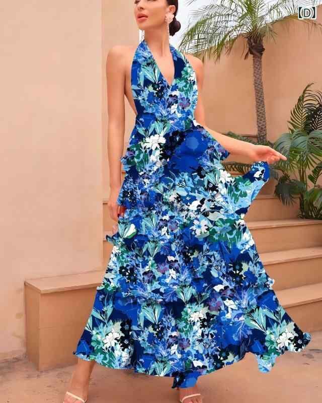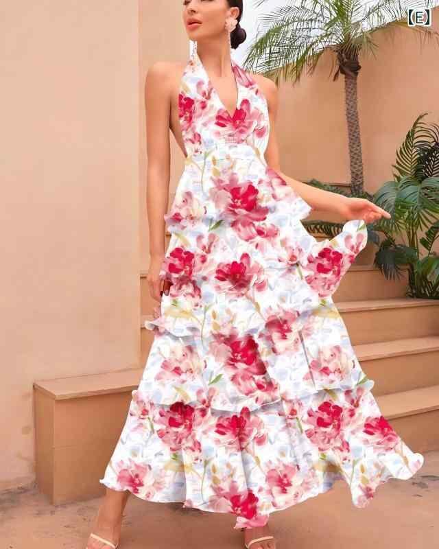 ワンピース レディース Vネック キャミソール 花柄 シフォン ロング丈 フレア マキシ丈 ティアード ハイウエスト おしゃれ エレガント 上品 きれいめ セクシー 通勤 オフィス リゾート | cybercart