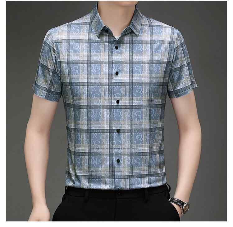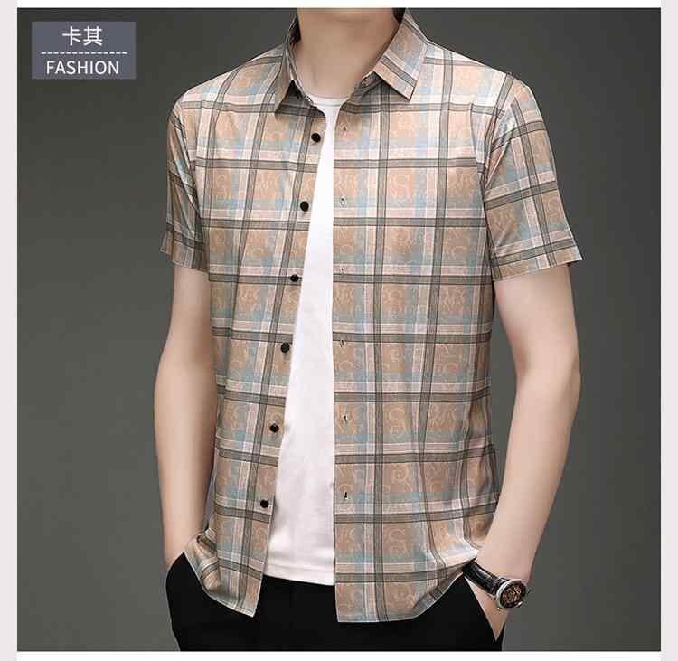 シャツ メンズ チェック柄 半袖 ポリエステル 薄手 スリムフィット ビジネスカジュアル 通勤 オフィス 普段使い 襟付き 着回し カジュアル シティスタイル