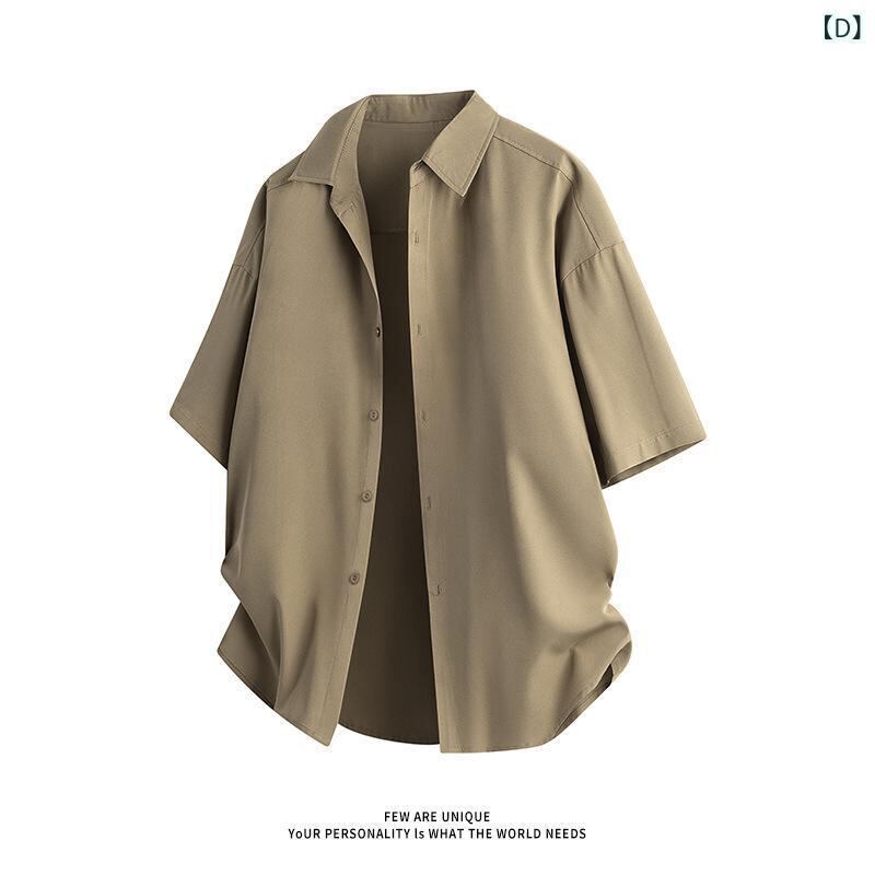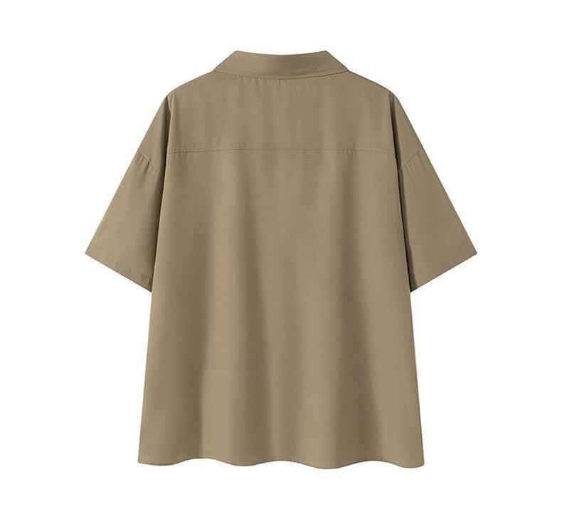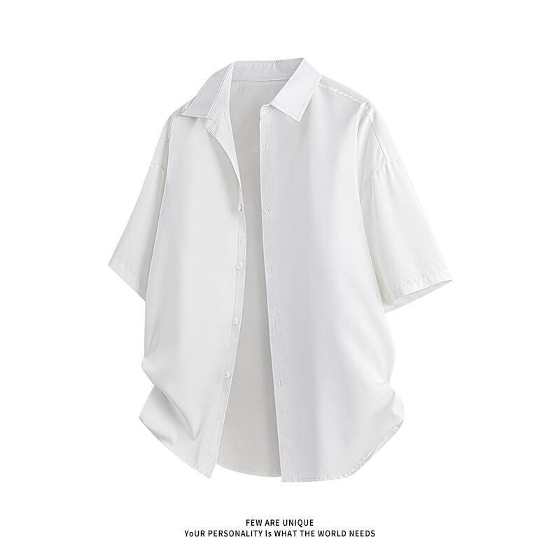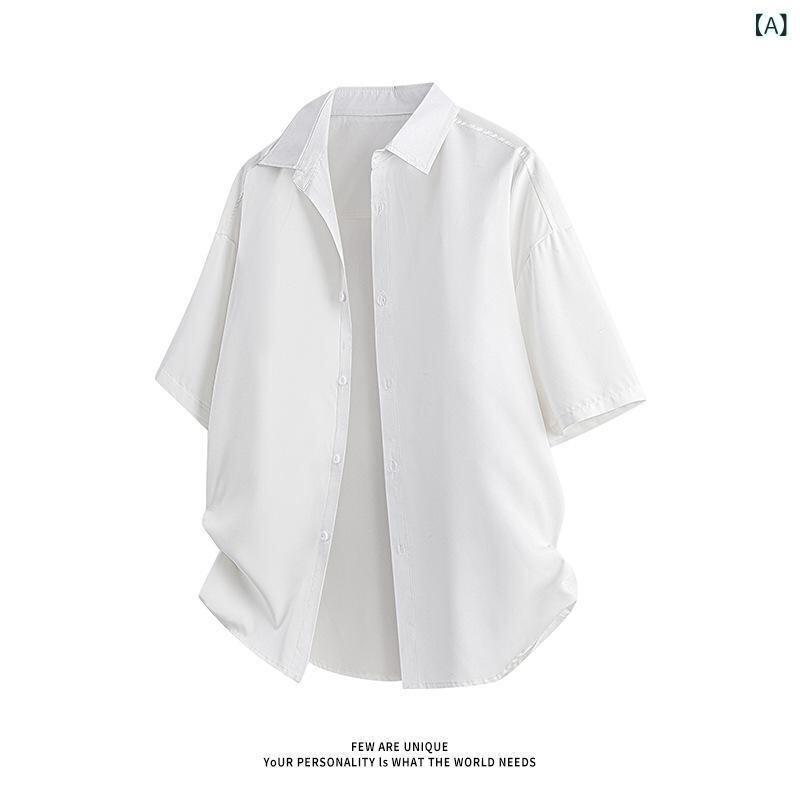 シャツ 男女兼用 半袖シャツ トップス 韓国風 香港風 カジュアル ストリート ゆったり 無地 襟付き 薄手 軽量 しわになりにくい ポリエステル素材 夏 涼しい 日常使い 普段着 白 黒 ピンク カーキ 緑 青