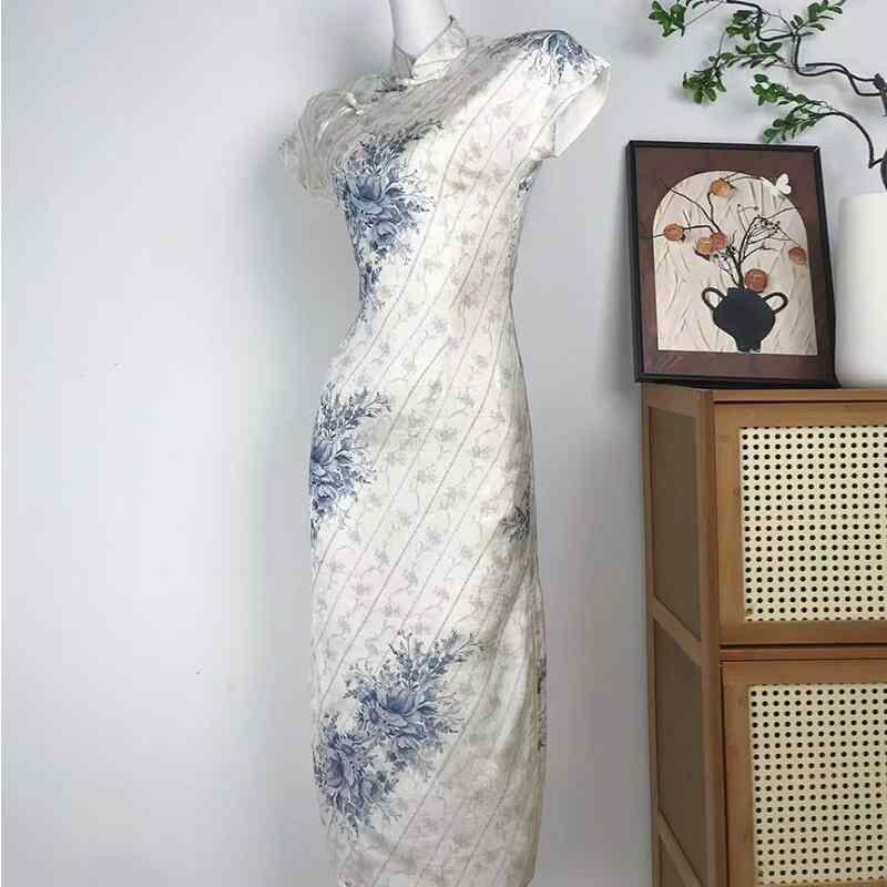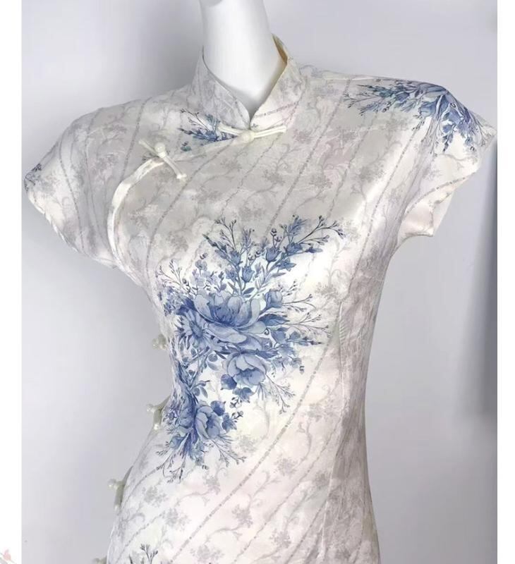 チャイナドレス レディース 半袖 ミディ丈 二重仕立て 大きいサイズ ゆったり 上品 エレガント 普段使い デイリー オフィス 光沢感 ストレッチ 体型カバー スタンドカラー チャイナボタン