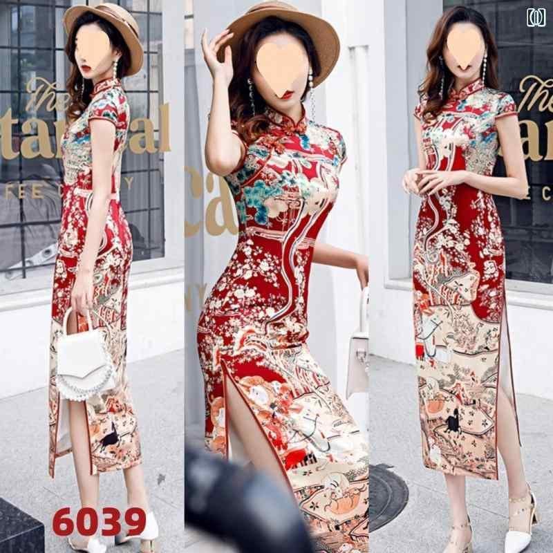 チャイナドレス レディース 夏物 改良型 レトロ ロング丈 スリムフィット 体型カバー 大きいサイズ プラスサイズ 高級感 エレガント 上品 普段使い 日常使い シルク調 ワンピース ドレス