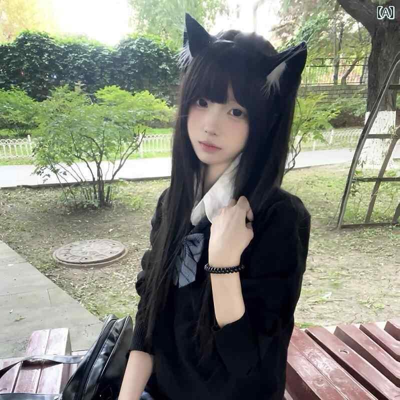 ウィッグ レディース フルウィッグ ロングストレート 自然なつむじ リアル ツインテール対応 ロリータ 少女風 若見え 耐熱ファイバー ダークブラウン