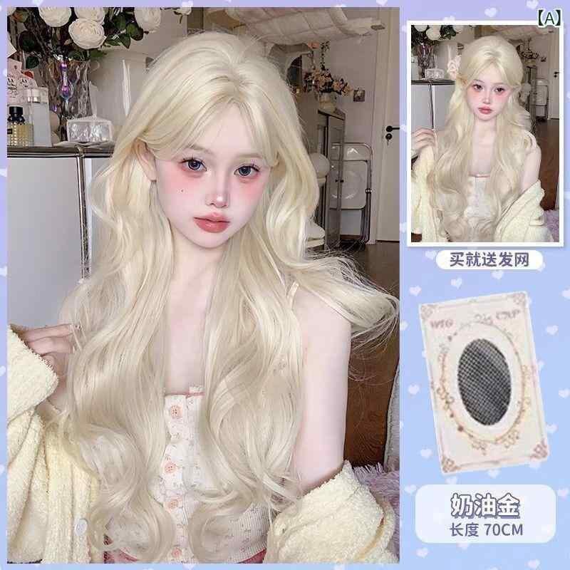 ウィッグ レディース ロングカール 大波ウェーブ ロリータ 自然なボリューム ふんわり アイボリーゴールド ベージュゴールド 再生繊維 フルウィッグ センター分け コスプレ イベント 仮装 ファッションアイテム 普段使い