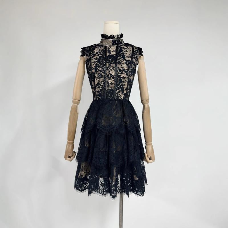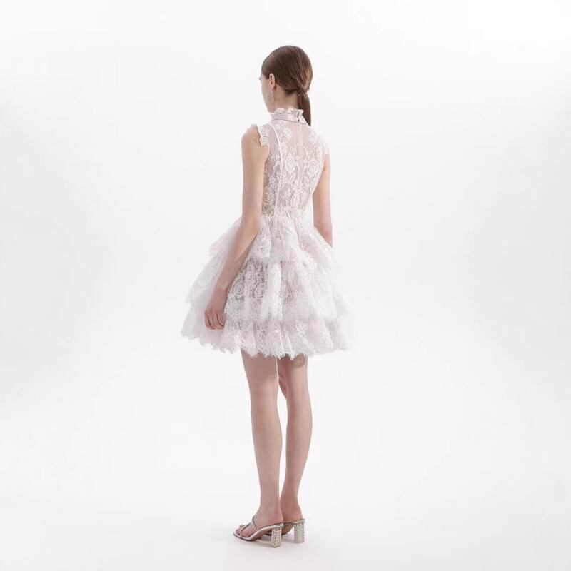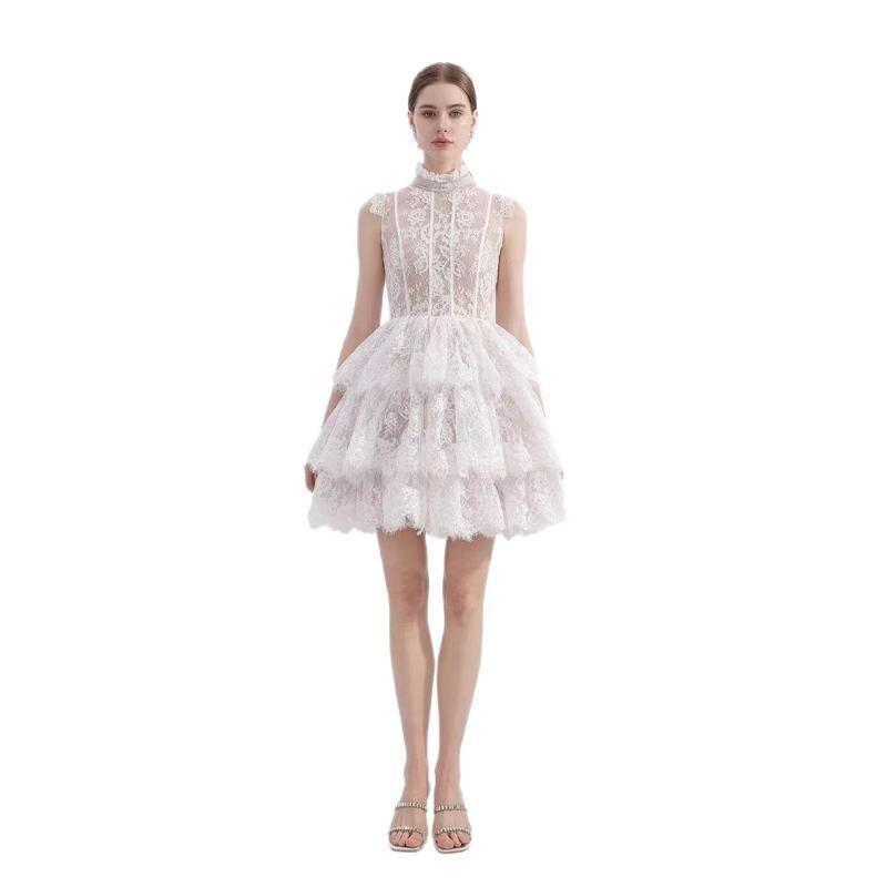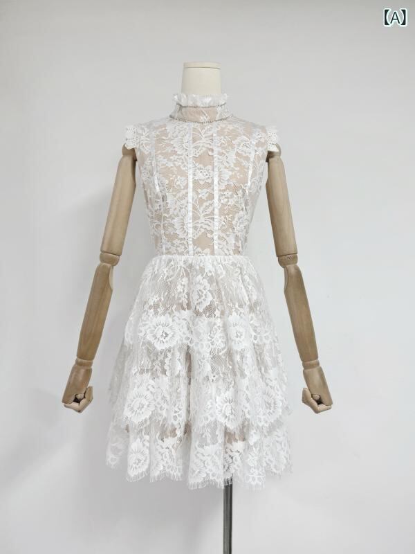 ワンピース レディース ロリータ スウィート ブライダルドレス ミニ丈 トレーン 精巧な刺繍 レース ポリエステル Aライン ノースリーブ ホワイト ブラック
