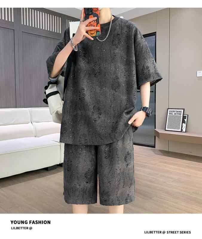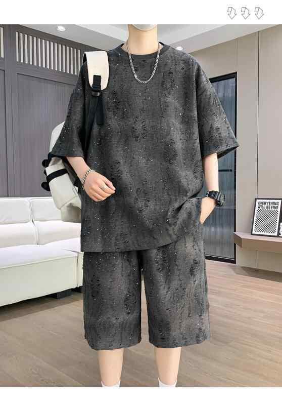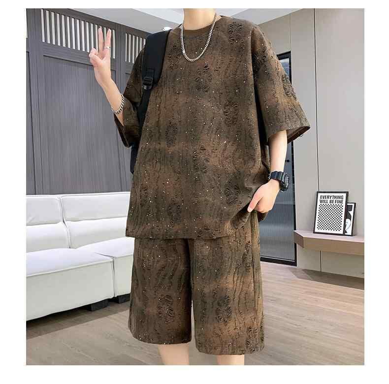 セットアップ メンズ 学生 若者 半袖 Tシャツ ショートパンツ カジュアル 流行 トレンド おしゃれ かっこいい 夏 綿混紡 ポリエステル ブラウン ブラック