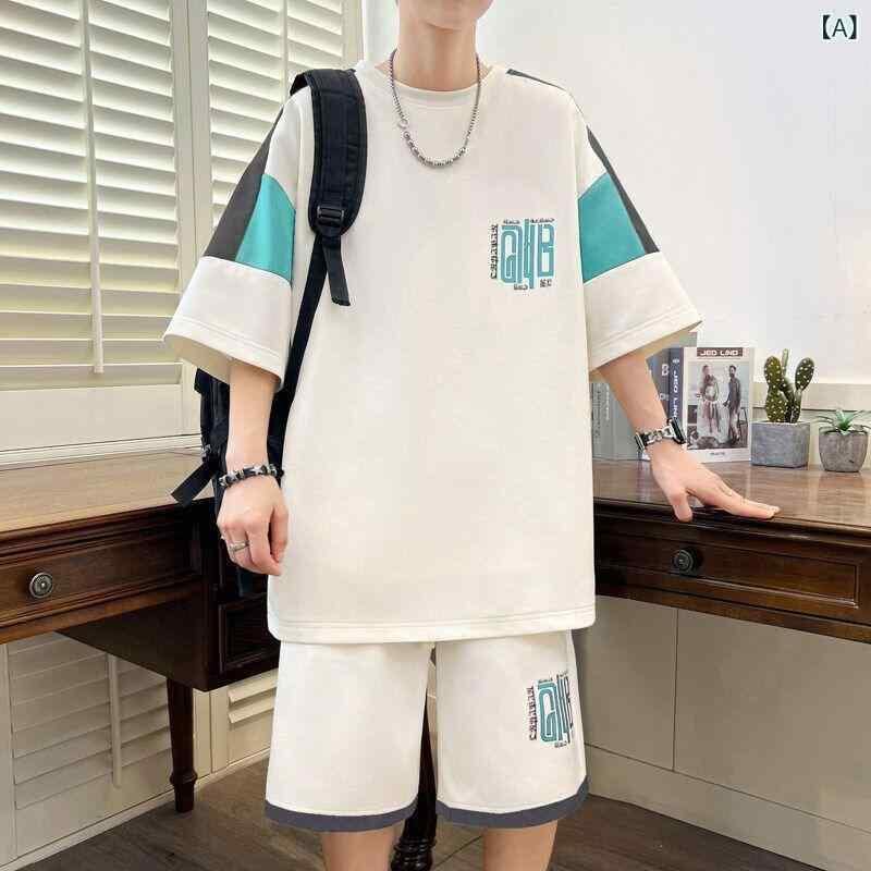 セットアップ メンズ 半袖Tシャツ ショートパンツ 上下セット 夏物 スポーツ レジャー アウトドア カジュアル 普段使い ルームウェア 韓国風ファッション コットン 吸湿速乾 軽量 おしゃれ クール