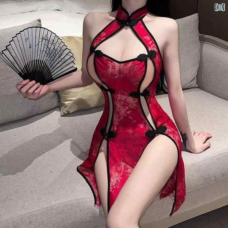 コスプレ レディース 大きいサイズ セクシー ランジェリー レトロ チャイナドレス 誘惑 ナイトウェア ボディスーツ ポリエステル素材 黒 赤 ルームウェア