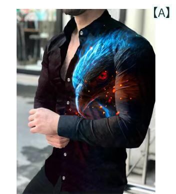 シャツ メンズ ハワイアン リゾート カジュアル 半袖 スタンドカラー イーグル柄 アメリカ国旗デザイン ポリエステル ストレッチ 薄手 通気性 デジタルプリント