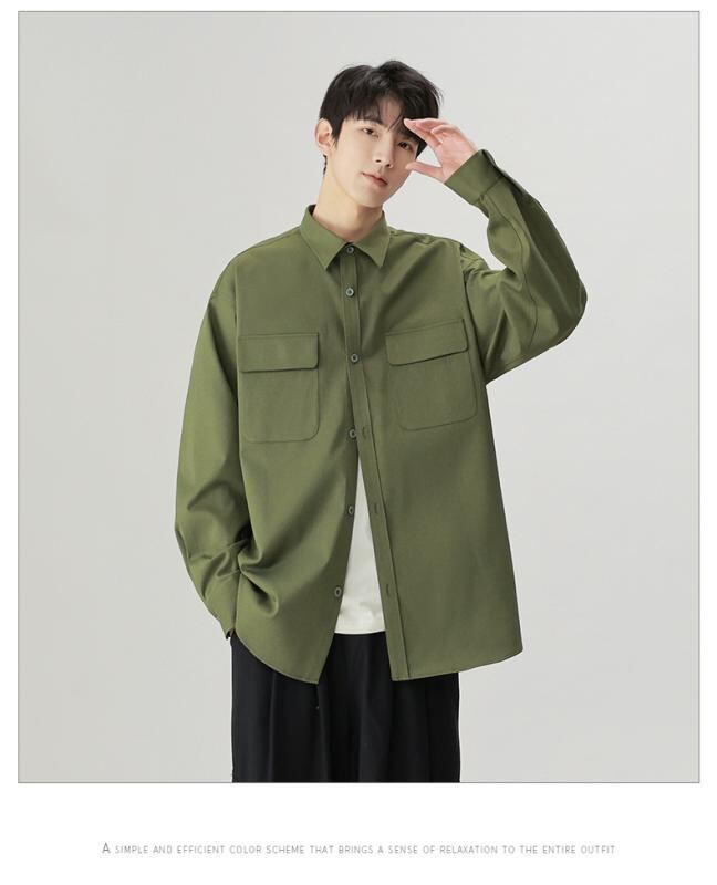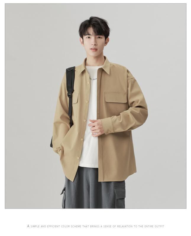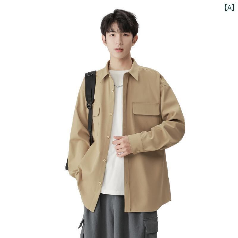 ・カテゴリ: シャツ・スタイル: 和風レトロ・主な素材: ポリエステル 96%以上・機能: 耐摩耗性・生地番手: 20番手・フィット: ゆったり・襟元: ターンカラー・袖丈: 長袖・柄: 無地・厚さ: 普通・デザイン: 配色・加工: プリント、染色・カラー展開: カーキ、ブラック、ホワイト、アーミーグリーン・サイズ展開: M、L、XL、XXL、3XL・対象: 成人・対象性別: 男性