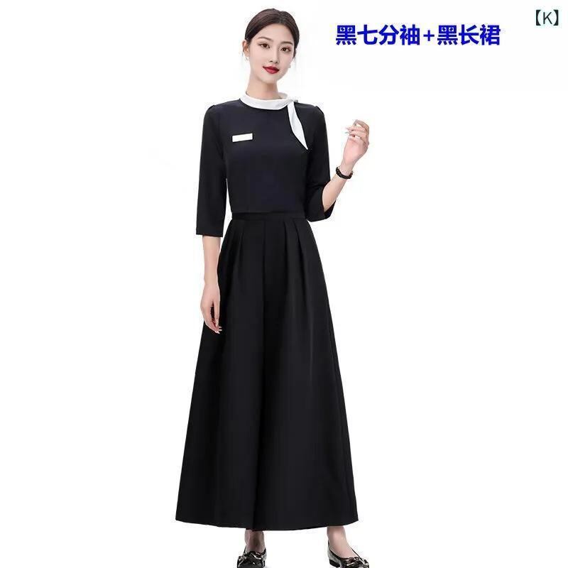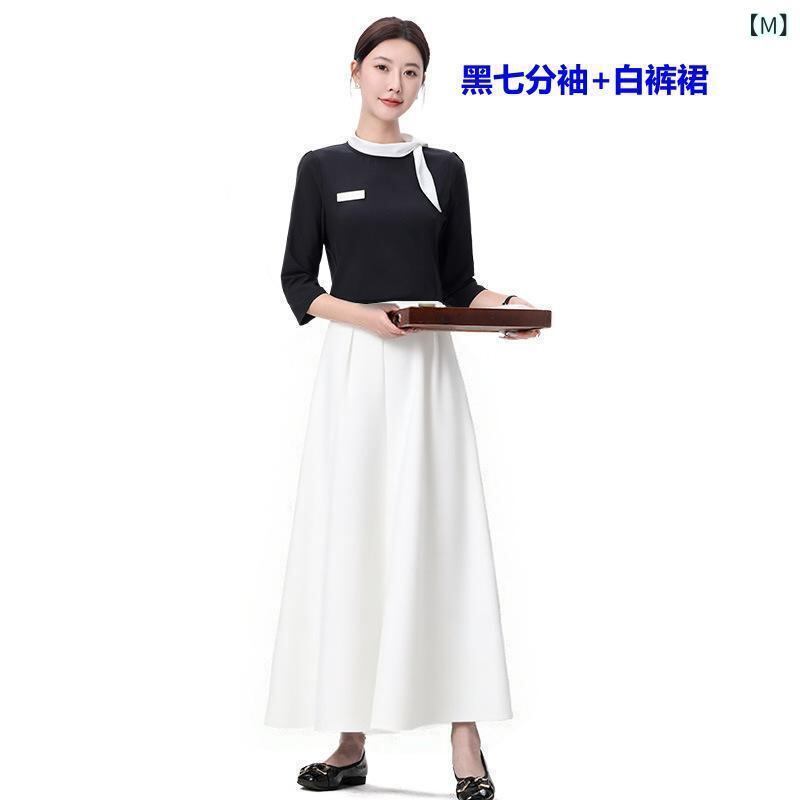ユニフォーム レディース エステサロン 美容院 美容クリニック 受付 美容師 制服 高級感 上品 エレガント 半袖 七分袖 セットアップ 上下セット 吸湿速乾 ポリエステル スパンデックス ロングスカート キュロット ストレートパンツ ブラック ホワイト
