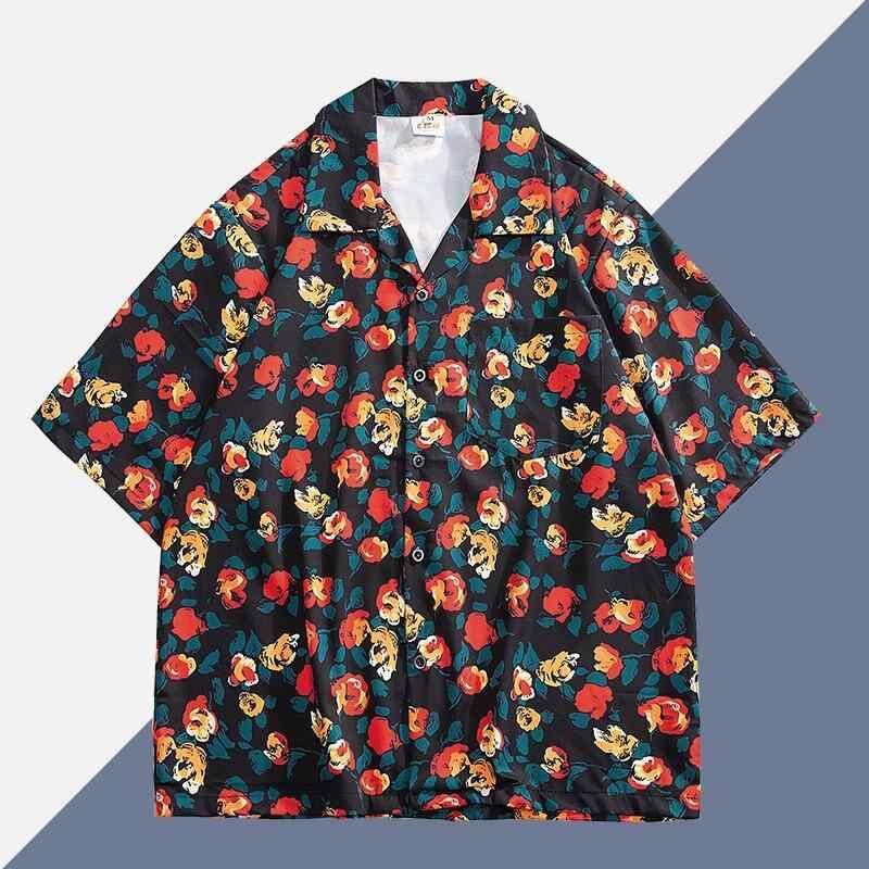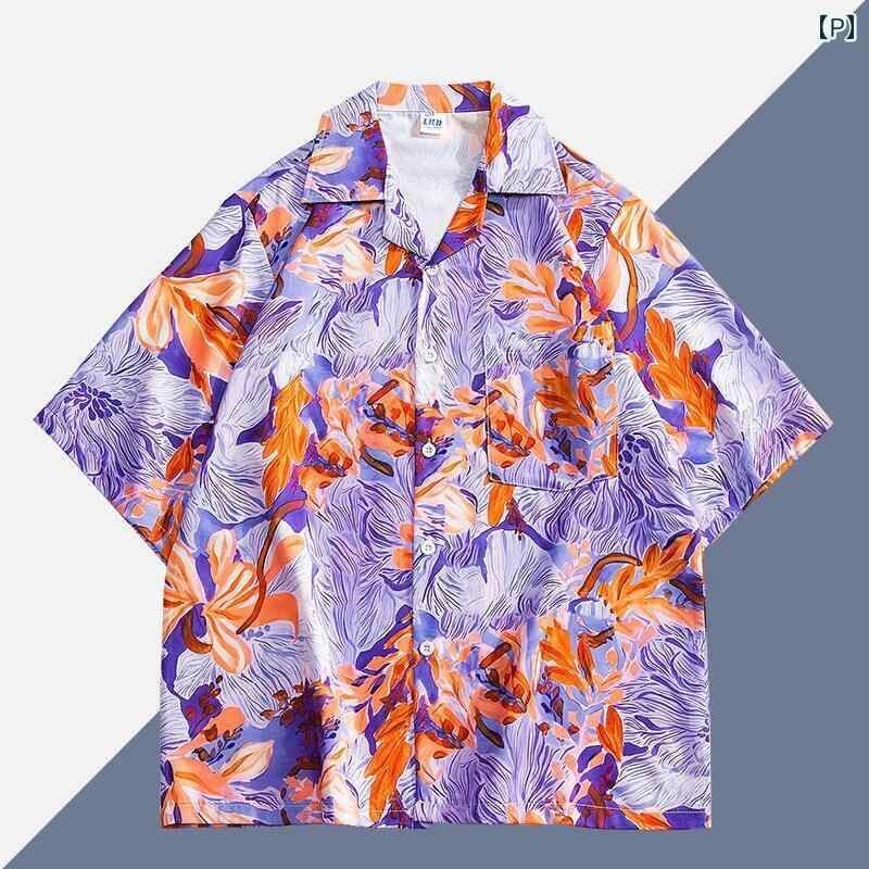 シャツ メンズ 男性用 半袖 レトロ ヴィンテージ風 ゆったり カジュアル 個性派 遊び心あるデザイン ポリエステル混紡 襟付き トップス 学生向け 普段使い
