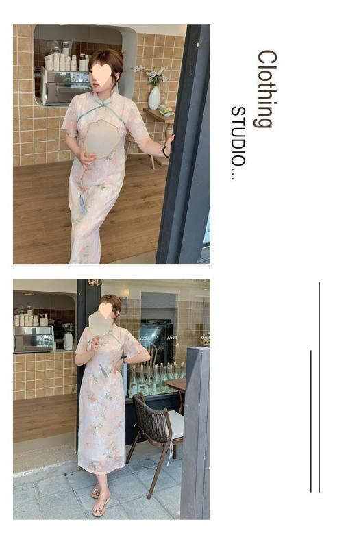 ワンピース レディース 大きいサイズ チャイナドレス レトロ ロング丈 スタンドカラー 半袖 ウエストマーク 細見え 体型カバー エレガント 上品 花柄 ポリエステル