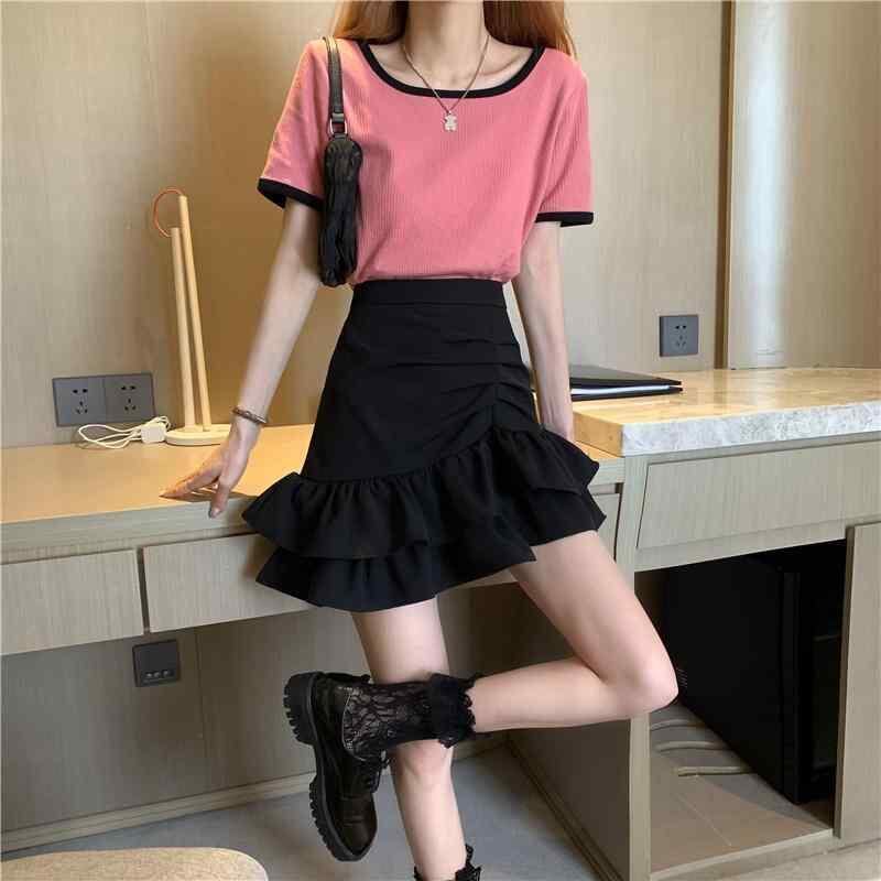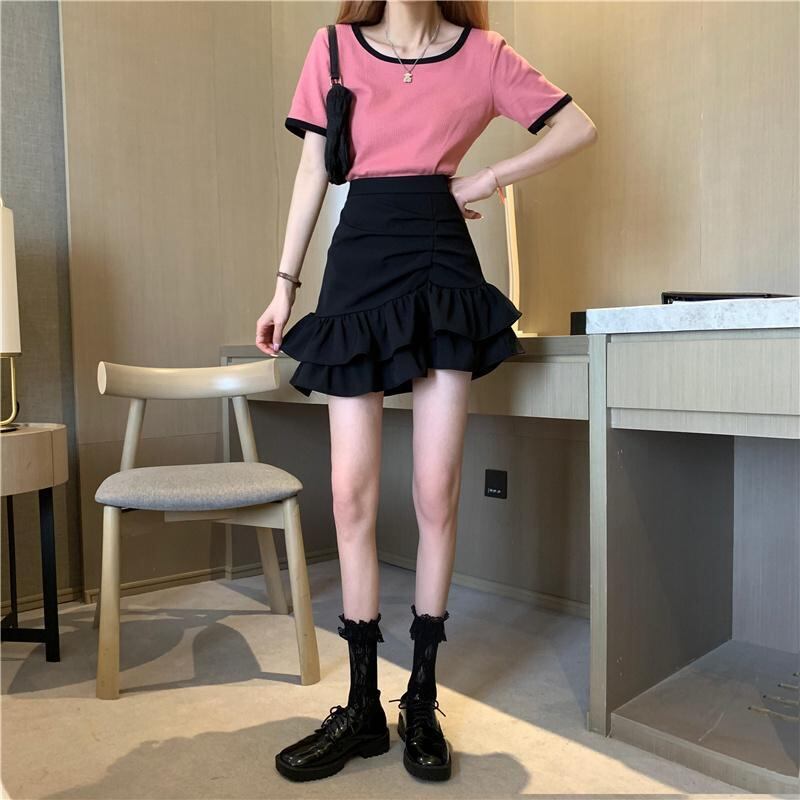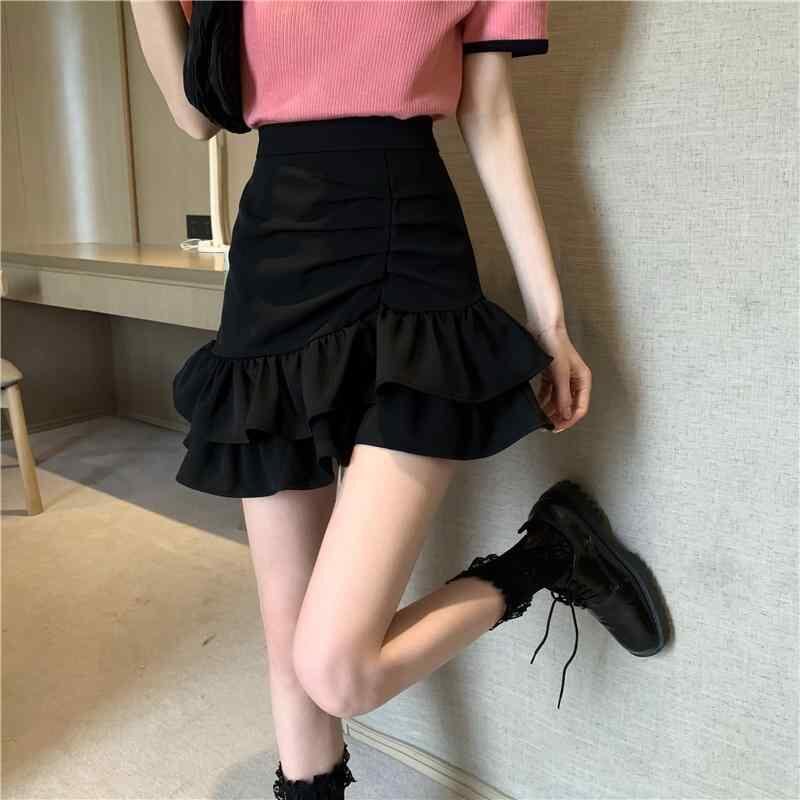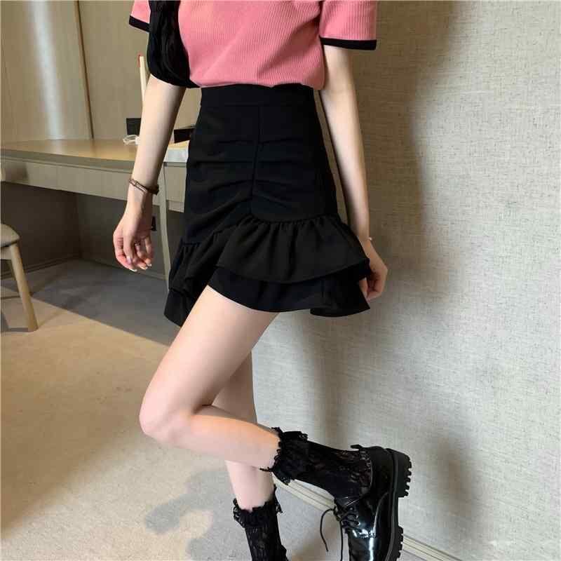 スカート レディース ゆったりサイズ 個性的 アシンメトリー ハイウエスト Aライン タイト ミニスカート フリル マーメイド 夏物 黒 無地 伸縮性 上品 きれいめ 大人女性