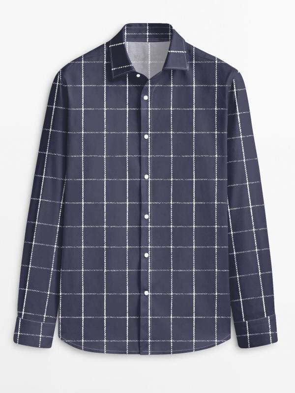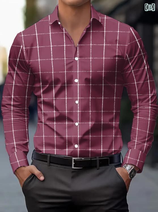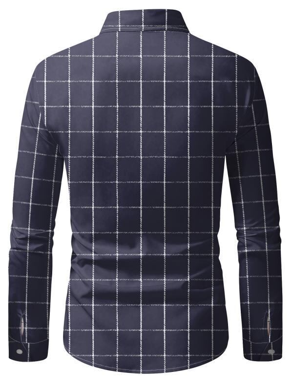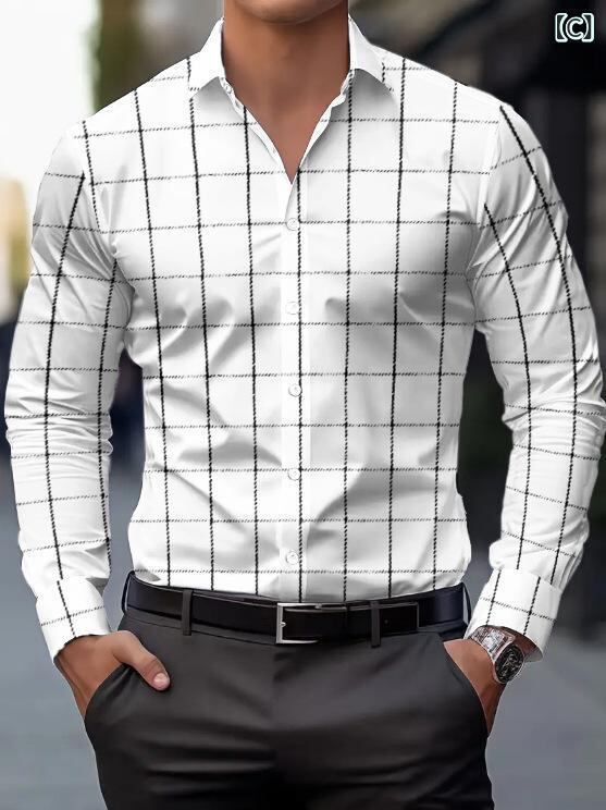 シャツ メンズ カジュアル ビジネス 長袖 格子柄 高級感 デジタルプリント ポリエステル 洗濯可能 ストレッチ 襟付き スリムフィット