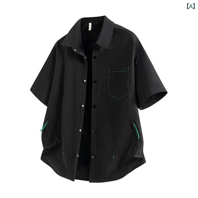 シャツ メンズ アメリカンレトロ 半袖 五分袖 マルチポケット ノーアイロン 通気性 高級感 ゆったり リラックスフィット ポリエステル オープンカラー ルーズフィット 吸湿速乾 カジュアル 普段使い ブラック ブラウン 夏 トップス