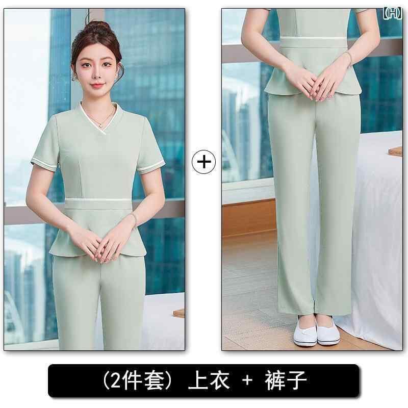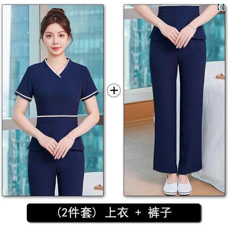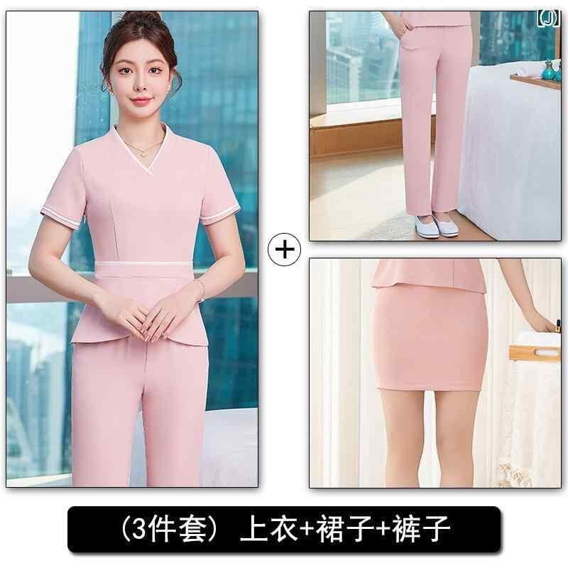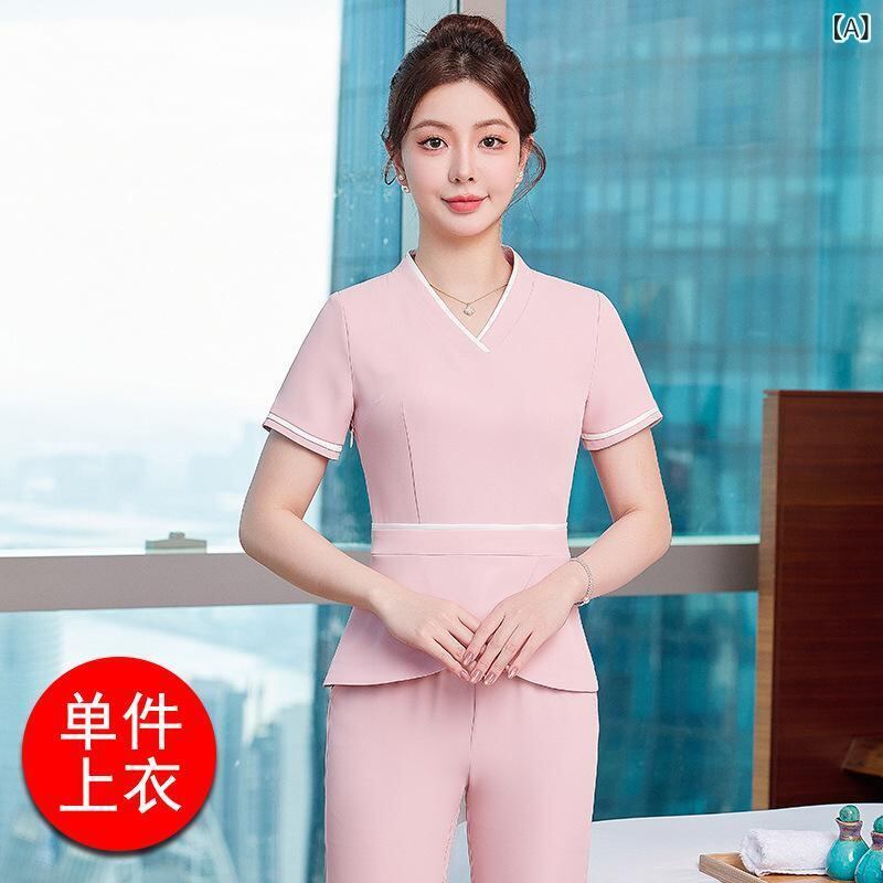 ユニフォーム レディース 女性用 美容サロン エステ ヒーリング リラクゼーション 半袖 トップス 夏用 ポリエステル シワになりにくい 快適 速乾 ピンク グリーン ブルー ワークウェア 施術着 マッサージ スキンケア フットケア 受付