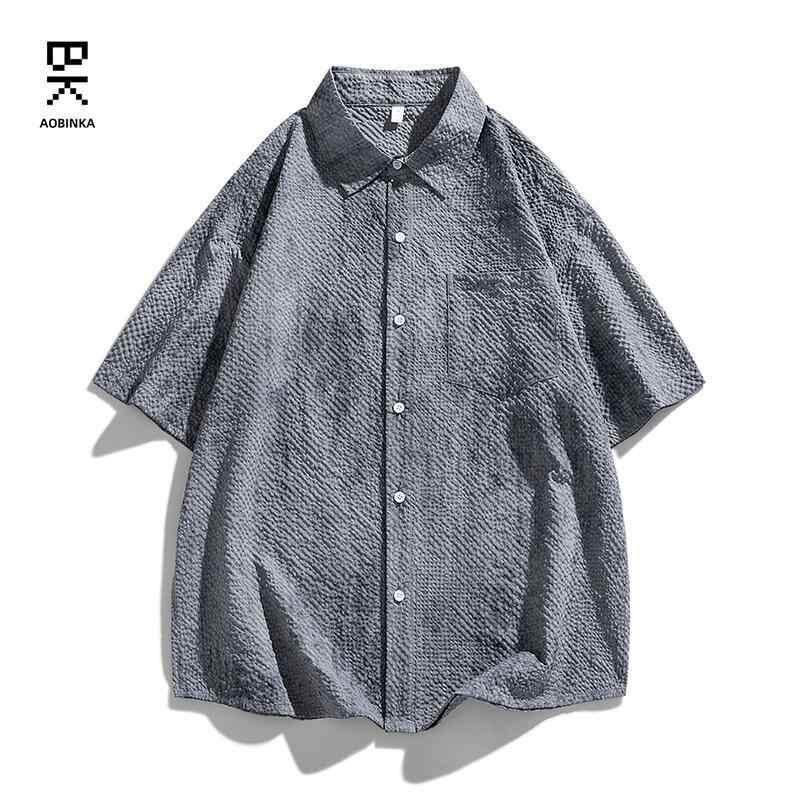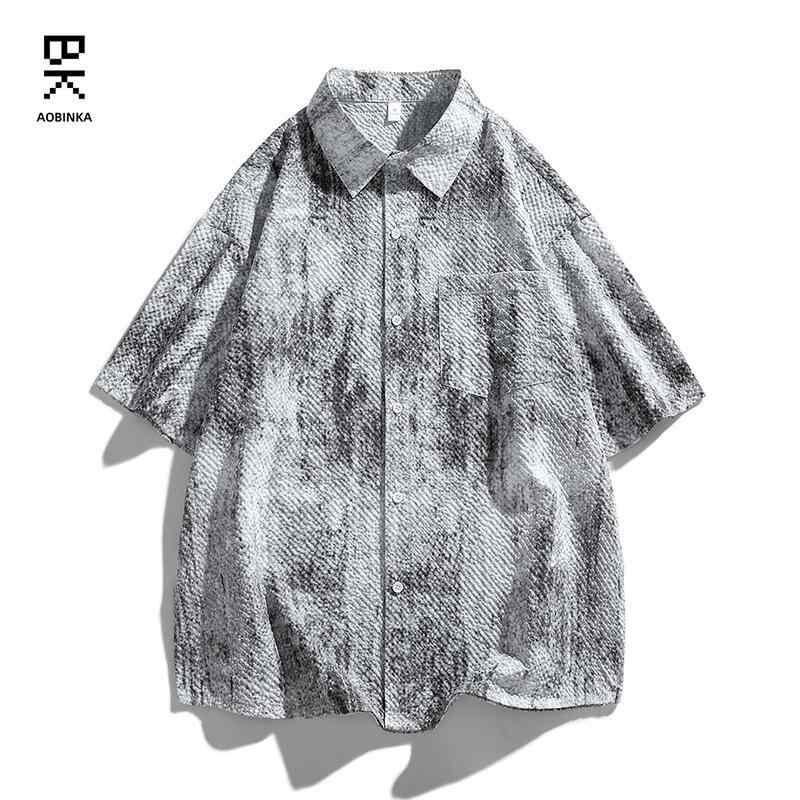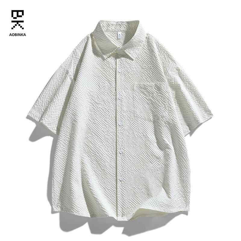 シャツ ユニセックス アメリカンヴィンテージ風 半袖 ゆったり ルーズフィット スタンドカラー ポリエステル 薄手 カジュアル リゾート ビーチ デイリーユース