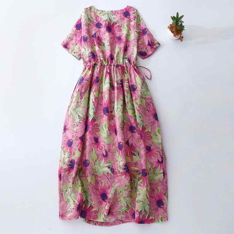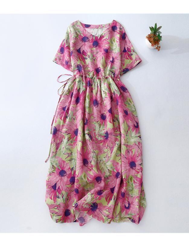 ワンピース レディース 日系 レトロ ヴィンテージ 花柄 プリント ゆったり ルーズ 大きいサイズ 体型カバー ロング丈 ミディ丈 半袖 ラウンドネック ポリエステル カジュアル エレガント 上品 デイリーユース