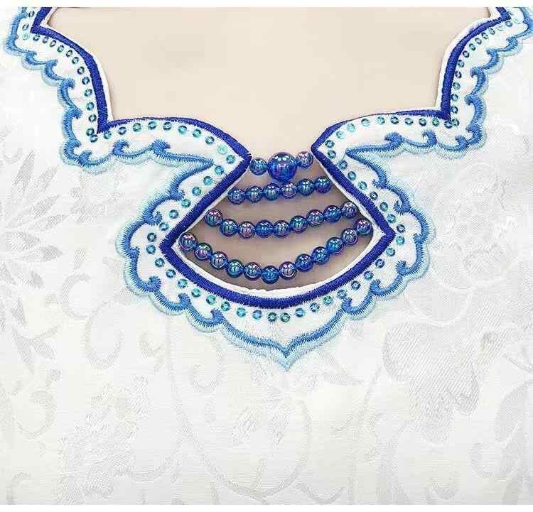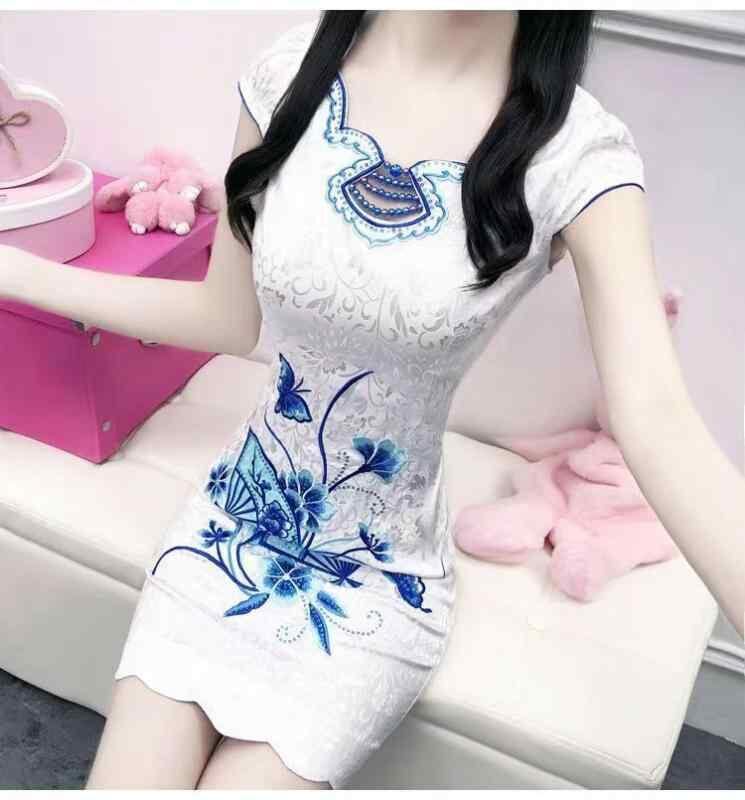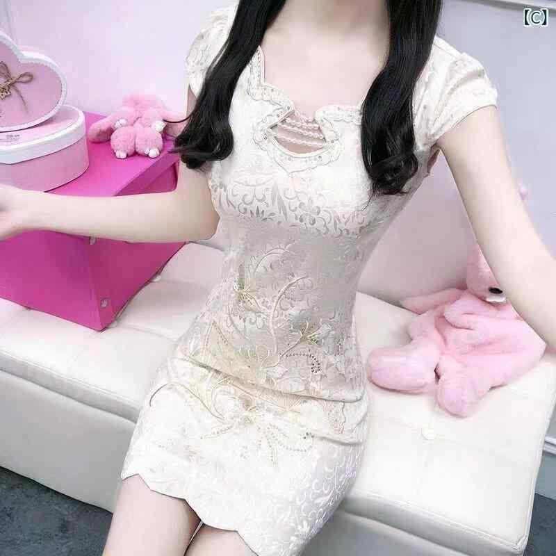 ワンピース レディース 半袖 チャイナドレス 大きいサイズ ゆったり スタイルアップ 着痩せ 刺繍 花柄 ショート丈 ラウンドネック フリル袖 上品 通勤 お出かけ アーバンスタイル エレガント ホワイト ピンク アプリコット