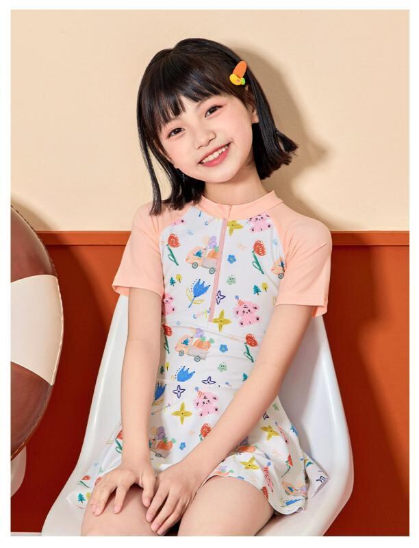 水着 キッズ 女の子 ワンピース ショートパンツ型 スイムウェア 総柄 デジタルプリント 花柄 小花柄 かわいい キュート スイミング プール 海水浴 ビーチ 温泉 リゾート 水遊び用 ナイロン ポリエステル 伸縮素材 スカイブルー ピンク系