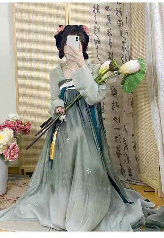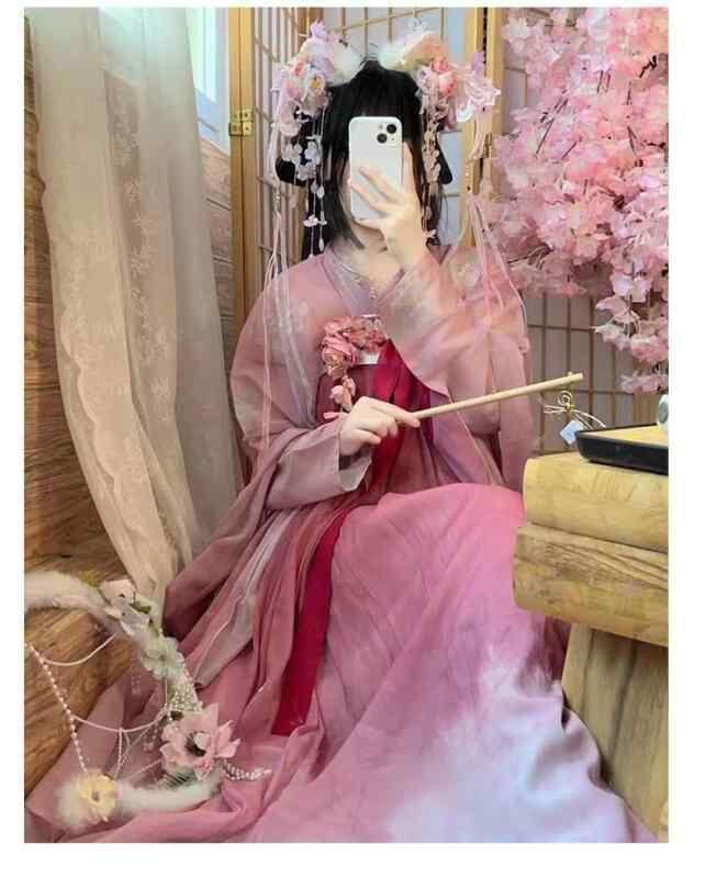 漢服 レディース 女性用 斉胸襦裙 大袖衫 唐代風 ポリエステル セットアップ 上下セット 優雅 エレガント 古代衣装 普段使い デイリー レトロ