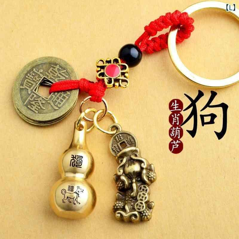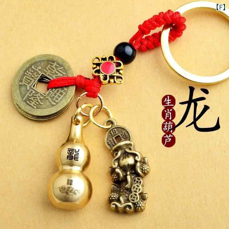 キーホルダー 赤い組紐 合金 五帝銭 銅銭 古銭 貔貅 ひきゅう 真鍮製 空洞ひょうたん 車用飾り カーアクセサリー 風水グッズ 開運アイテム 縁起物 お守り ラッキーアイテム 魔除け 財運招来 幸運祈願 ギフト