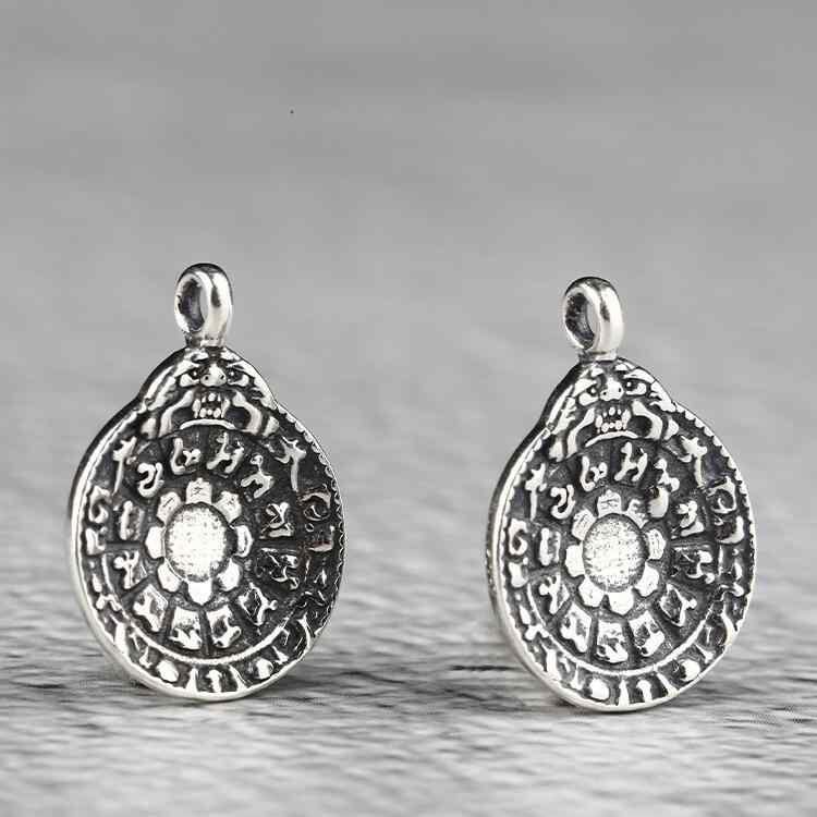 ペンダント S925シルバー チベット様式 九宮八卦牌 サイド吊り下げ 数珠 菩提樹の実 ネックレス ブレスレット用 精巧な作り レトロ 幸運 お守り