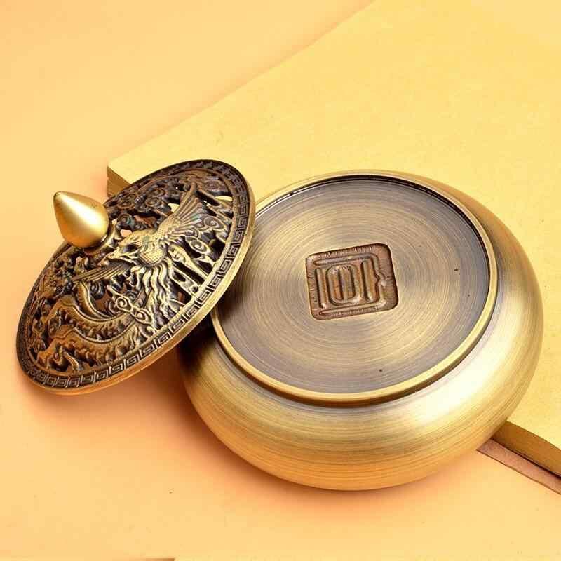 香炉 真鍮製 龍と鳳凰 彫刻 中国風 クラシックデザイン 灰皿 アッシュトレイ 置物 インテリア オブジェ デスク オフィス 書斎 リビング 玄関 高級感 縁起物