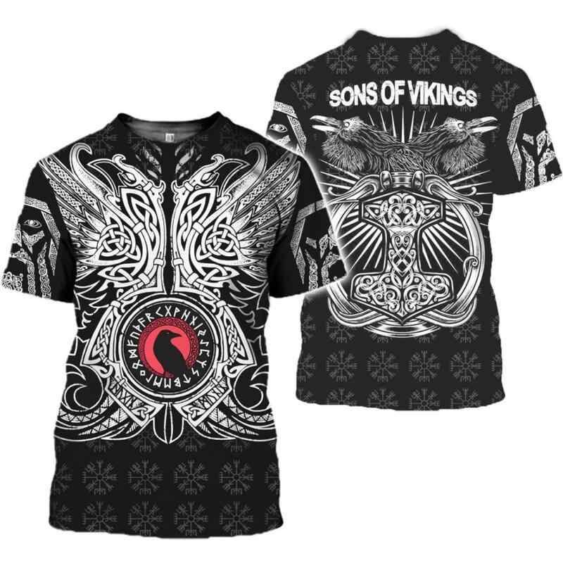 Tシャツ メンズ 男性用 トップス バイキング柄 タトゥー風 3D デジタルプリント 半袖 半そで ゆったり オーバーサイズ クルーネック 丸首 ポリエステル 吸湿速乾 接触冷感 カジュアル ストリート系 普段使い 夏物