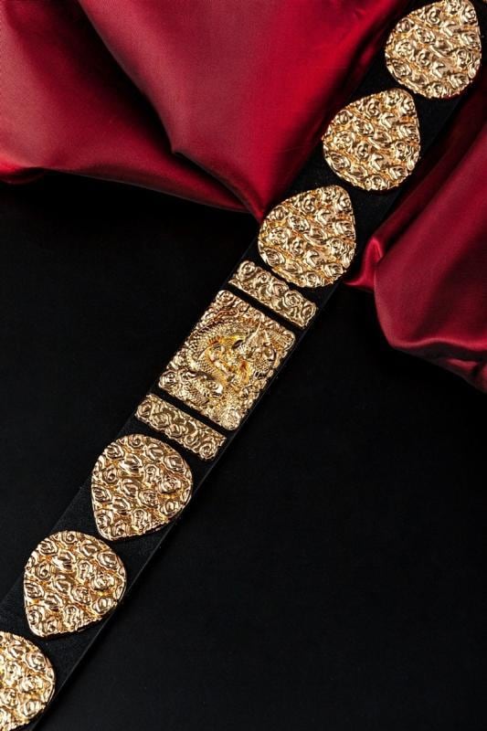 ベルト 本革製 リアルレザー 出雲龍紋 ドラゴン柄 漢服 コスプレ 衣装 明代風 円領袍 貼裏 飛魚服 装飾品 アンティークゴールド ソフト しなやか
