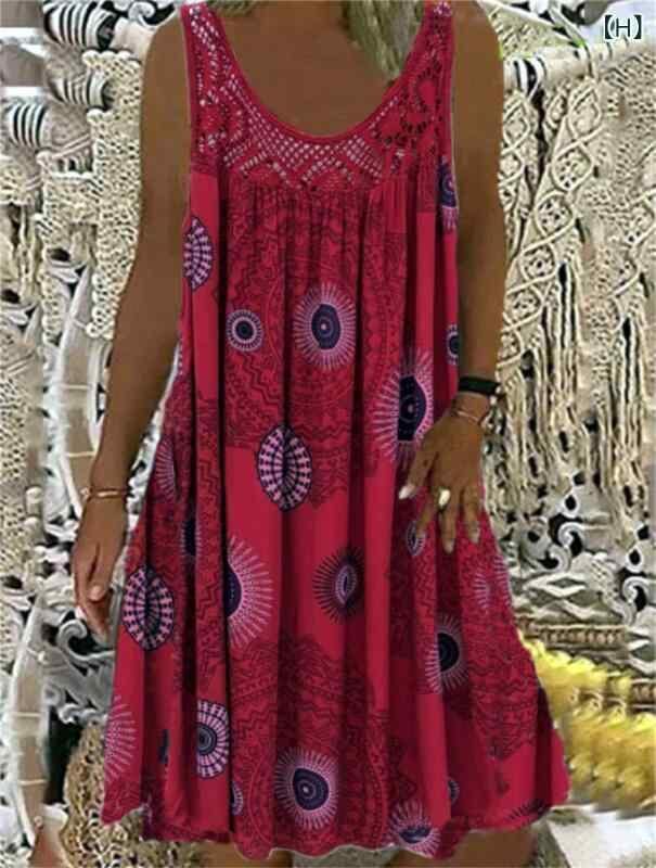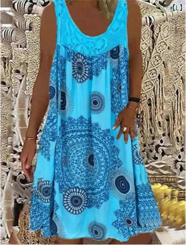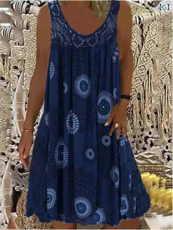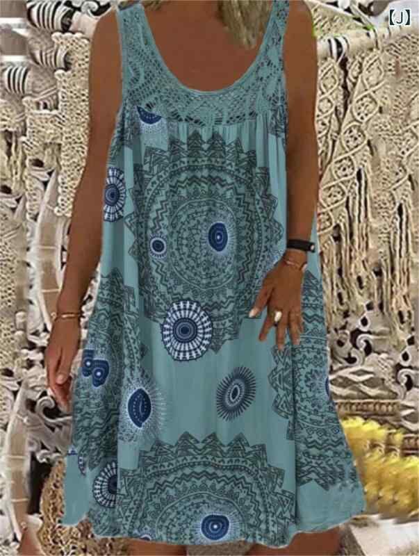 ワンピース レディース ゆったり Aライン オフショルダー ノースリーブ キャミソール レース 小花柄 総柄プリント ミモレ丈 クルーネック ミドルウエスト 普段使い 大人カジュアル きれいめ 再生繊維 ポリエステル 綿混
