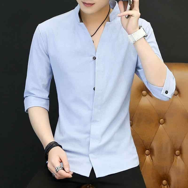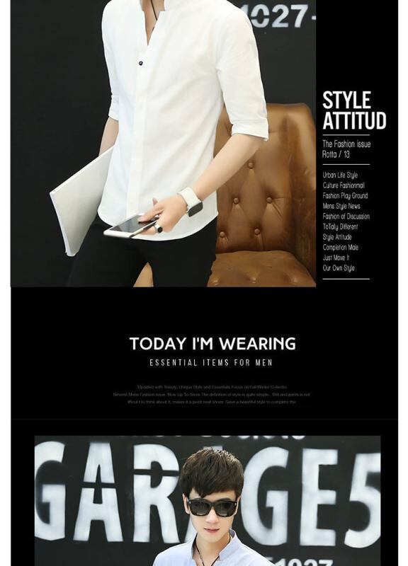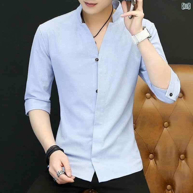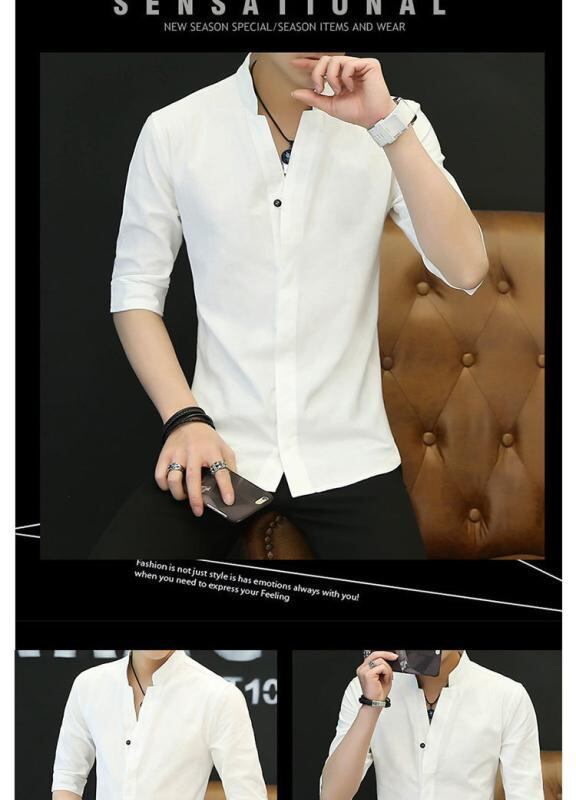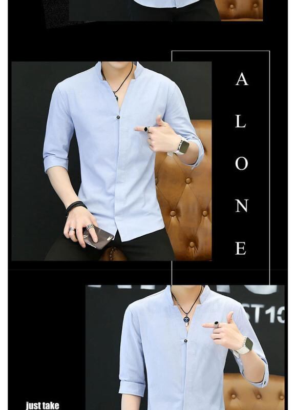 シャツ メンズ スタンドカラー スリムフィット カジュアル 半袖 長袖 七分袖 春秋 無地 ポリエステル 防シワ イージーケア 韓国風 デイリーユース