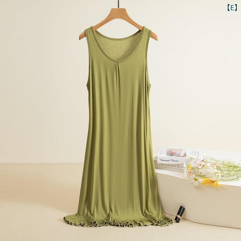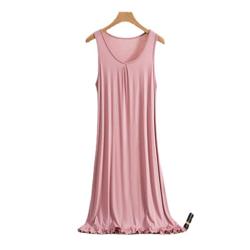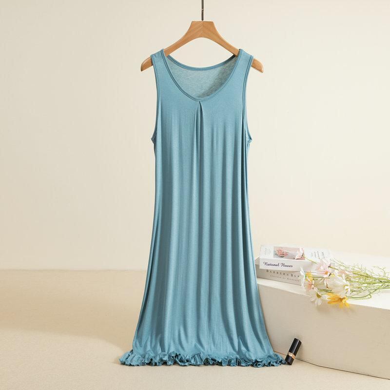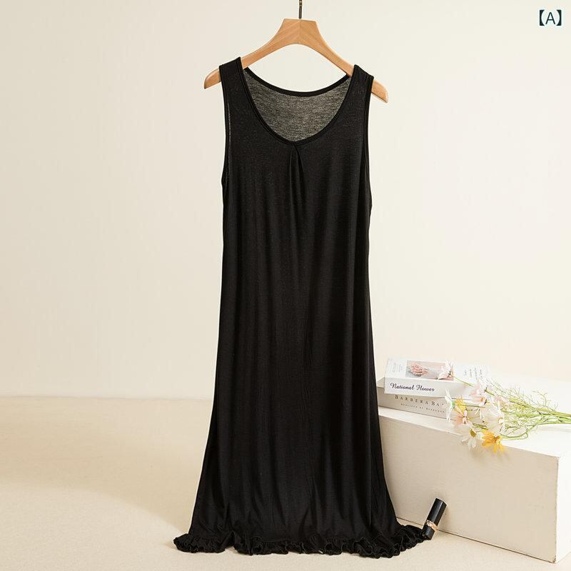 ワンピース レディース モダール フリル 無地 クルーネック ハイウエスト ミモレ丈 ゆったり 大きいサイズ ビッグサイズ ノースリーブ インナーワンピース プルオーバー ノーアイロン きれいめ 通勤 カジュアル リラックス 快適