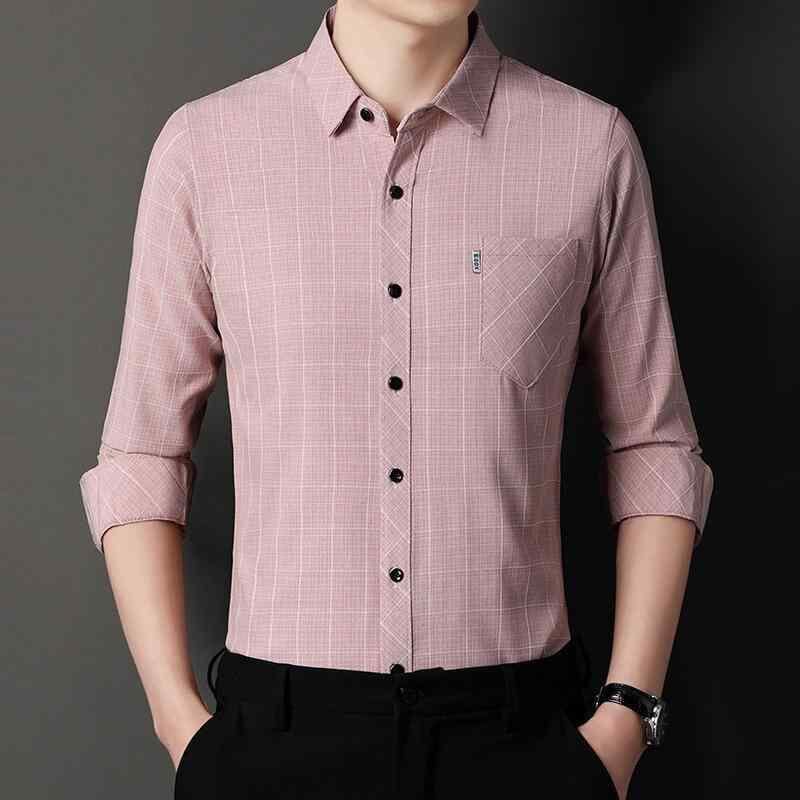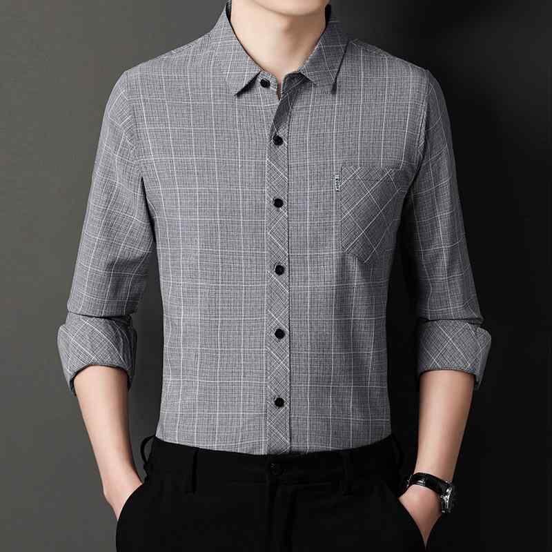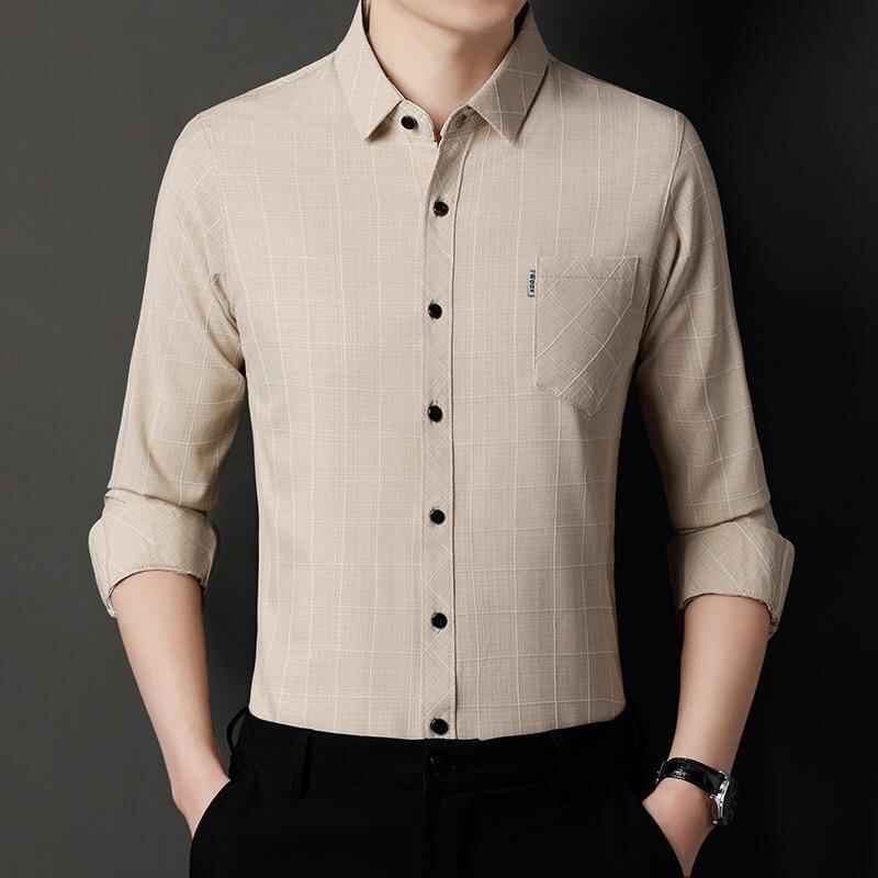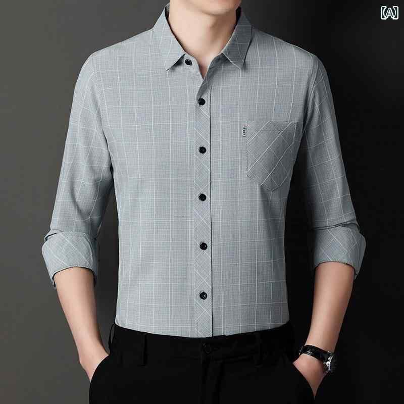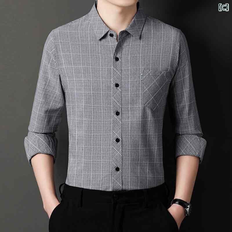 シャツ メンズ ビジネス 紳士 通勤 オフィス カジュアル チェック柄 長袖 コットン リネン 再生繊維混紡 ゆったり ルーズフィット 襟付き ポケット付き 春秋