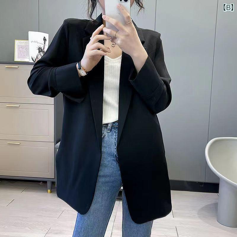 [{'item': '柄', 'value': '無地'}, {'item': 'フィット感', 'value': 'ゆったり'}, {'item': 'ネックライン', 'value': 'テーラードカラー'}, {'item': '袖丈', 'value': '長袖'}, {'item': '袖タイプ', 'value': 'レギュラー'}, {'item': '製法', 'value': 'パッチワーク/切り替え'}, {'item': '主な素材', 'value': 'ポリエステル90%-95%'}, {'item': 'カラー展開', 'value': 'ホワイト、ブラック、ピンク、ライトグリーン、グレー'}, {'item': 'サイズ展開', 'value': 'S、M、L、XL、2XL'}, {'item': 'スタイル', 'value': 'エレガント通勤'}, {'item': 'テイスト', 'value': 'エレガント'}, {'item': 'カテゴリ', 'value': 'ジャケット'}]