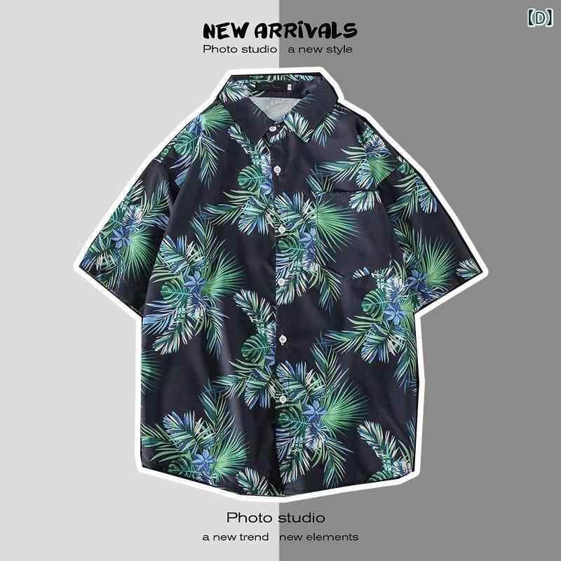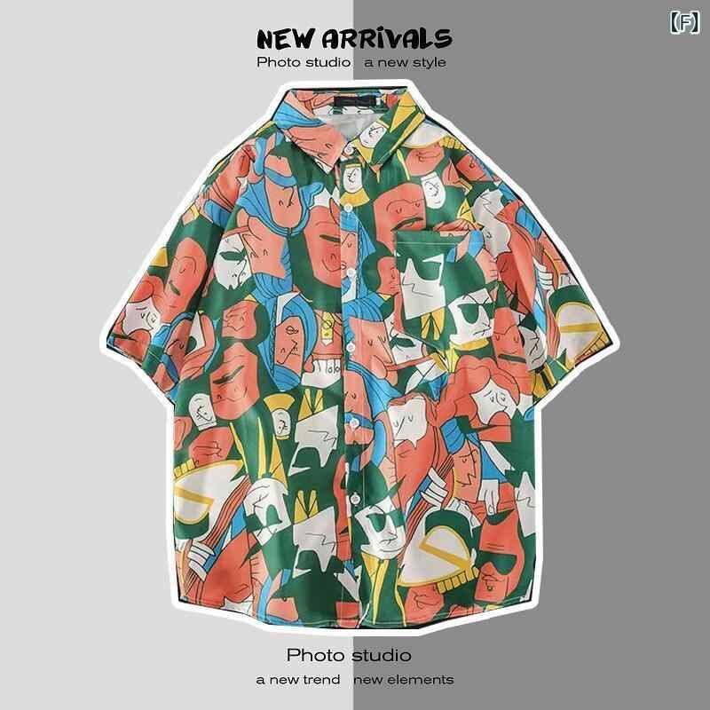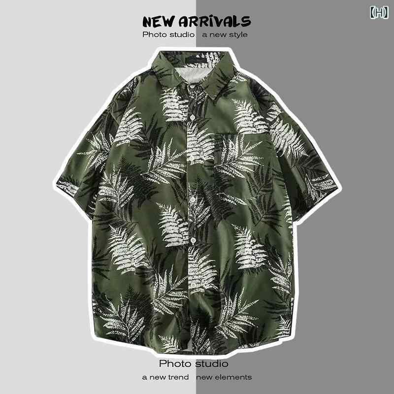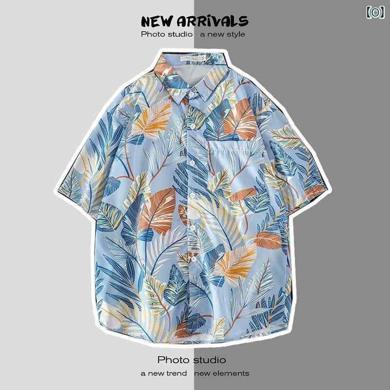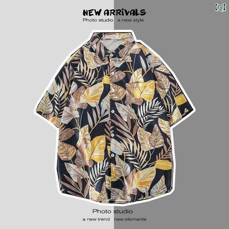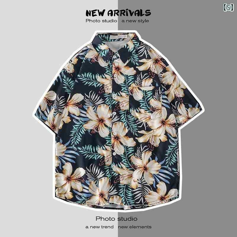 シャツ メンズ 半袖 ゆったり ルーズフィット 花柄 総柄 韓国風 アロハシャツ ハワイアン レトロ 夏物 カジュアル リゾート ビーチウェア ポリエステル 薄手 スタンドカラー ウォッシャブル