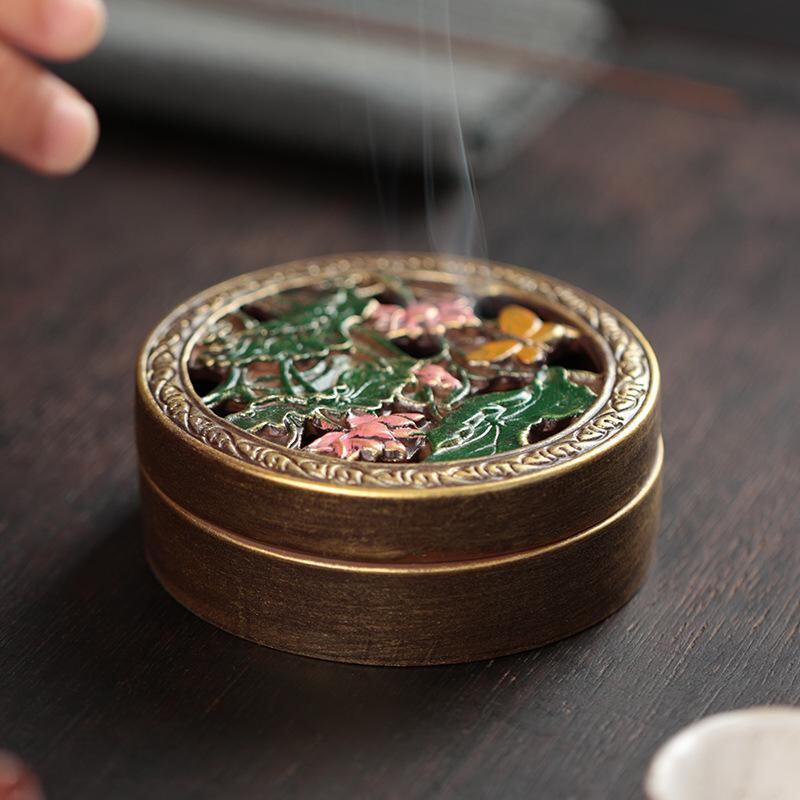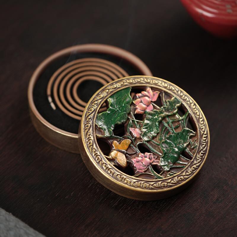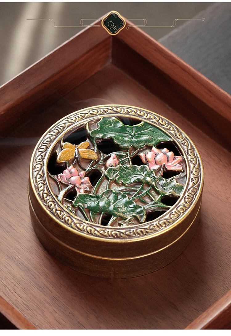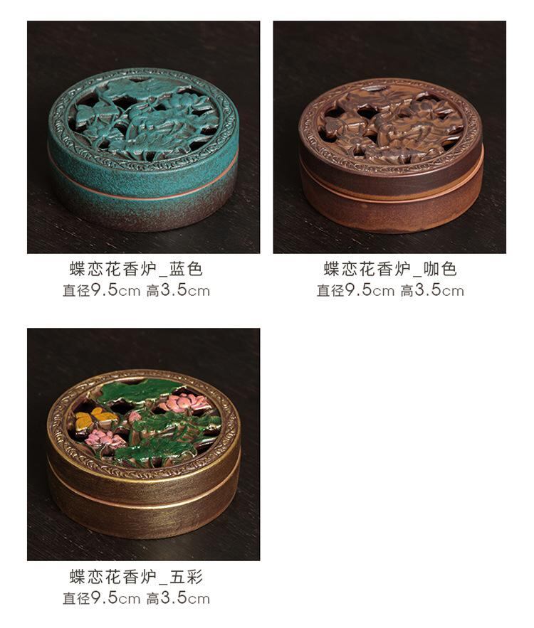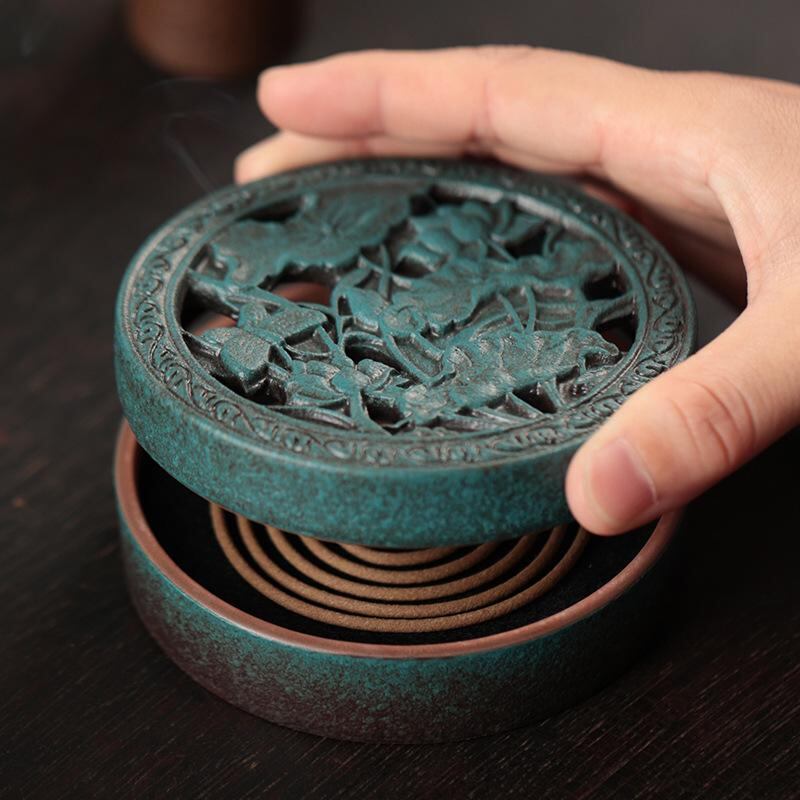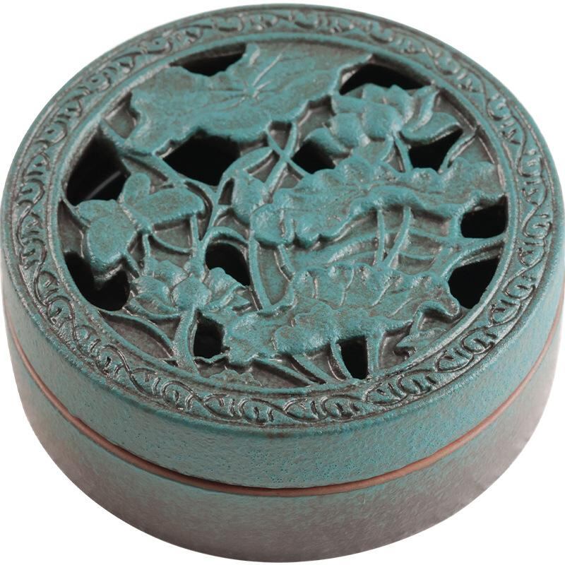 香炉 陶器 渦巻き線香 白檀線香 家庭用 室内用 卓上 お香立て おしゃれ 和風 蓮の花柄 半手作り アロマ ポット 置物 リビング 書斎 茶室 青 ブラウン 多色