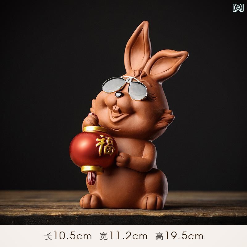 置物 うさぎ 兎 かわいい おしゃれ 陶器製 紫砂 ラッキーアイテム 縁起物 干支 リビング テレビ台 デスク 玄関飾り インテリア オブジェ プレゼント