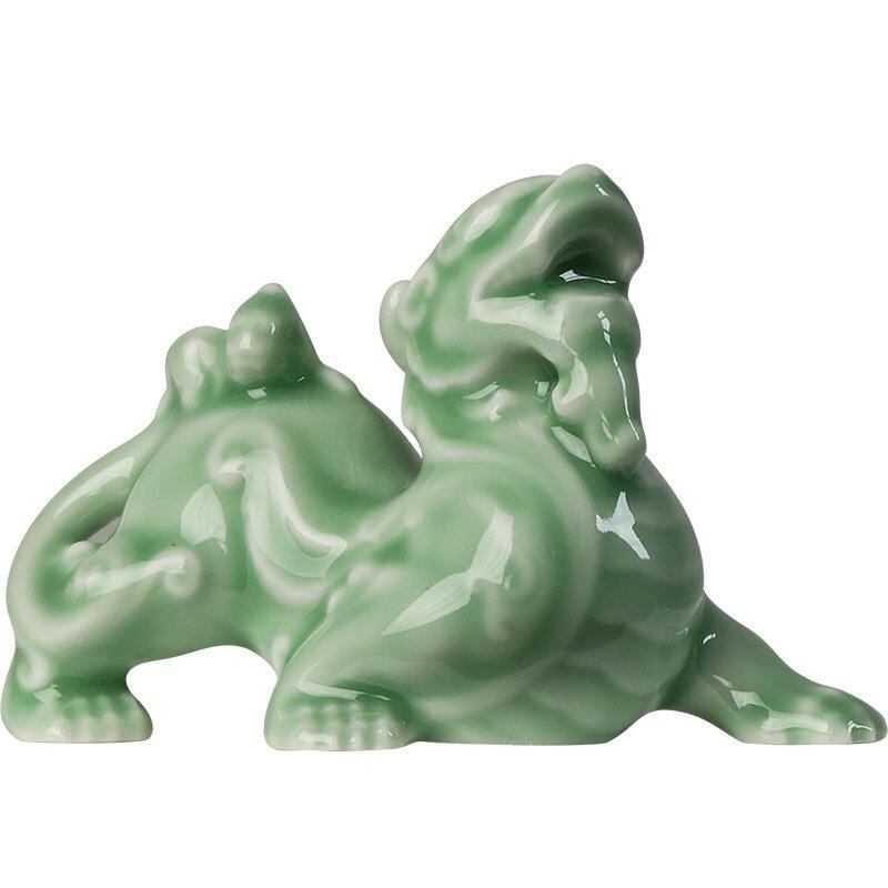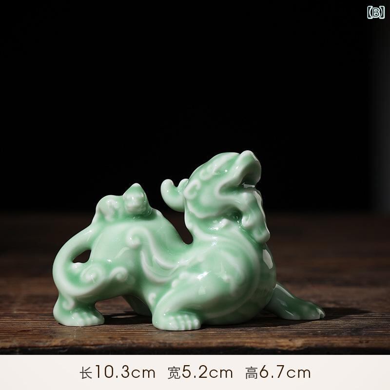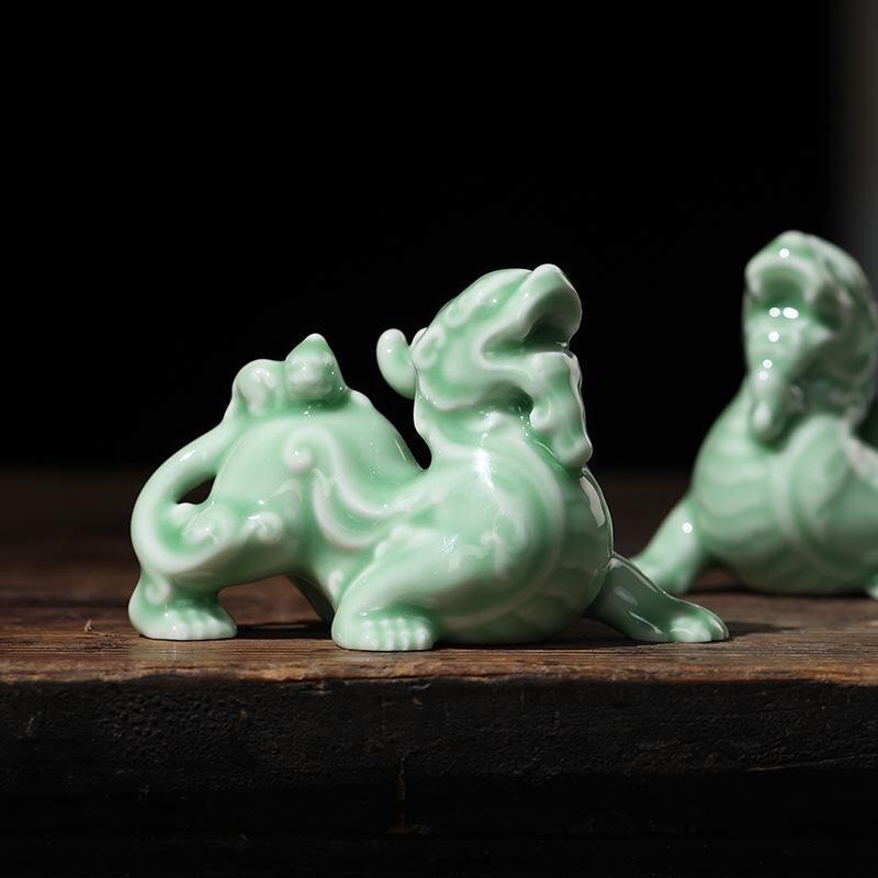置物 貔貅 陶器 青磁 小型 一対 財運アップ 魔除け 開運 風水 リビング オフィス 卓上 インテリア 飾り 工芸品 縁起物