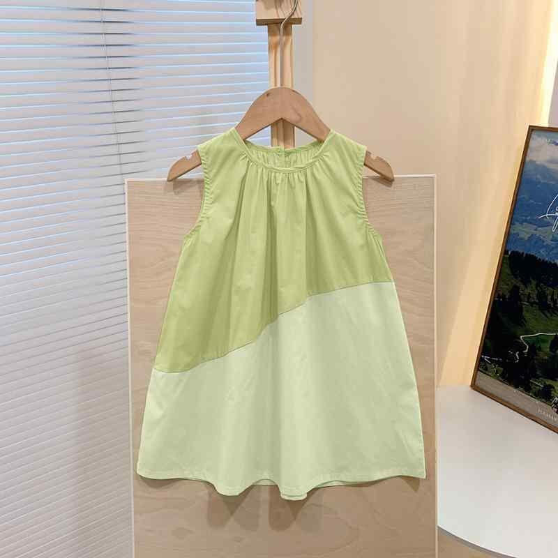 ワンピース キッズ 女の子 子供服 かわいい 配色切り替え ノースリーブ ゆったり Aラインシルエット 綿 コットン カジュアル 夏服 サマーウェア