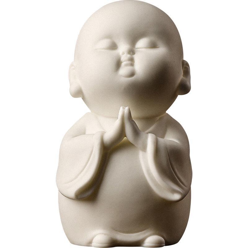 置物 徳化白磁 小坊主 陶磁器 中国風 禅スタイル 瞑想 祈り オブジェ インテリア リビング 玄関 書斎 デスク 卓上 飾り 癒し