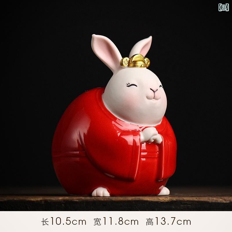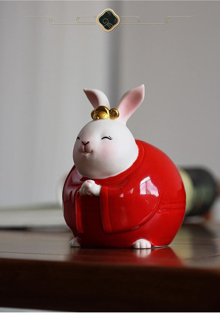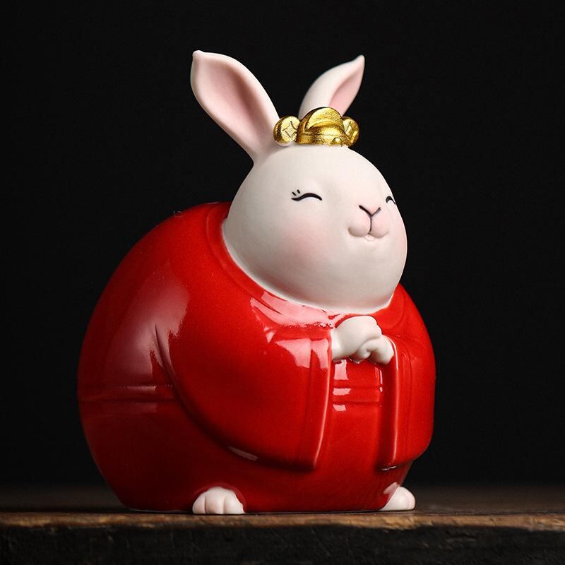 置物 かわいい 漫画風 うさぎ ラビット 縁起物 マスコット インテリア 玄関 リビング デスク飾り 陶器製 セラミック製 ブルー レッド